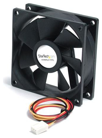 StarTech Wentylator 80mm, 3 pin. Przepływ powietrza 26.6 CFM.Obroty wentylatora 2000.Poziom hałasu 27 dBA.