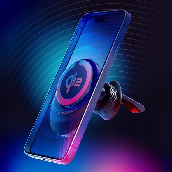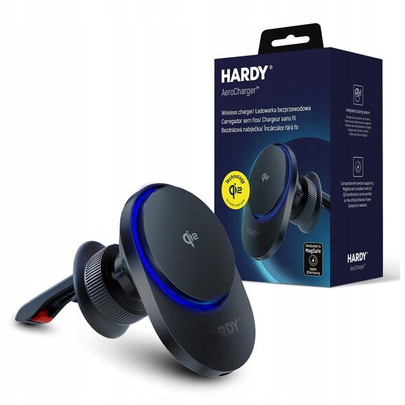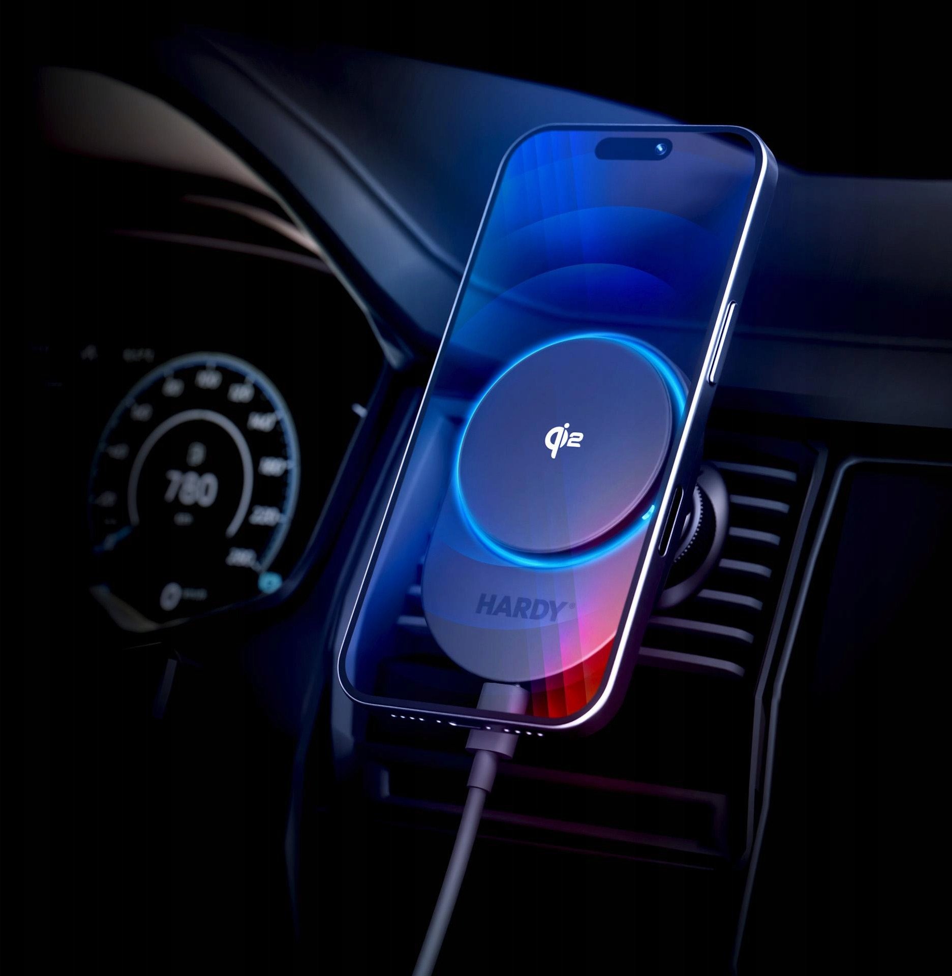 Uchwyt samochodowy 3mk HARDY® AeroCharger do kratki wentylacyjnej dla urządzeń kompatybilnych z Qi2 / MagSafe Qi2 i MagSafe - maksymalna moc ładowania bez kabli. Zostaw w tyle powolne ładowarki i bałagan z kablami.