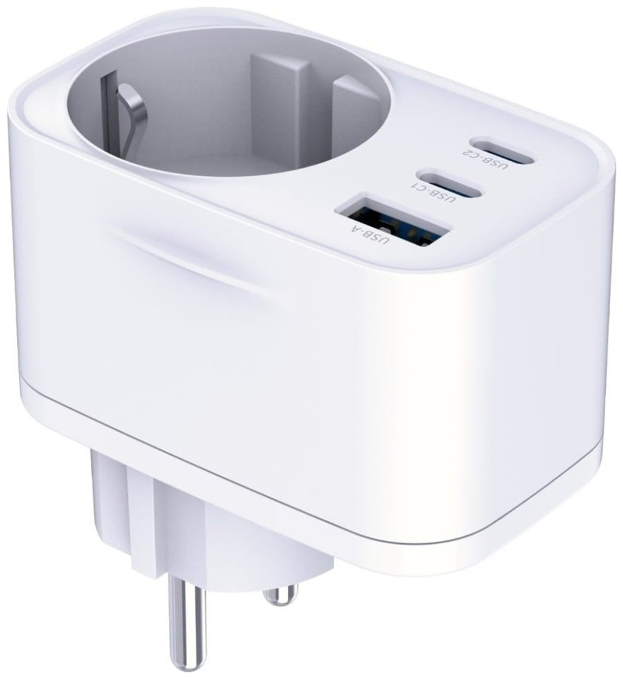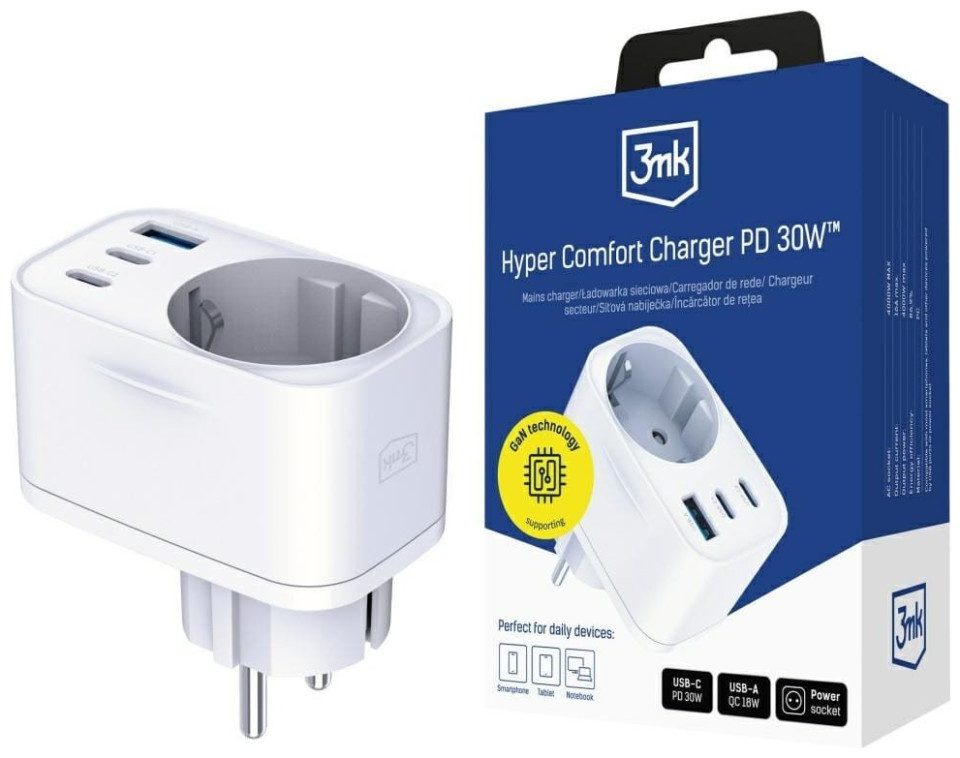 Adapter sieciowy 3MK Hyper Comfort Charger 30W 1xUSB-A 2xUSB-C 1xSchuko PD QC3.0 biały