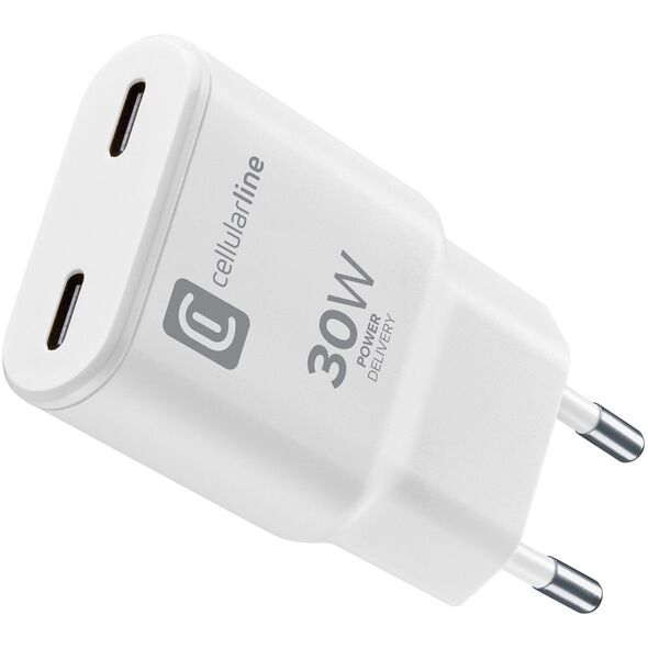 Φορτιστής Ταξιδιού USB-C Duo GaN 30W White της Cellular Line