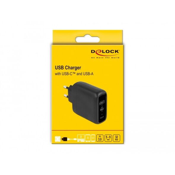 Φορτιστής USB Delock USB Type-C PD 3.0 και USB Τύπου-A με 20 W + 12 W