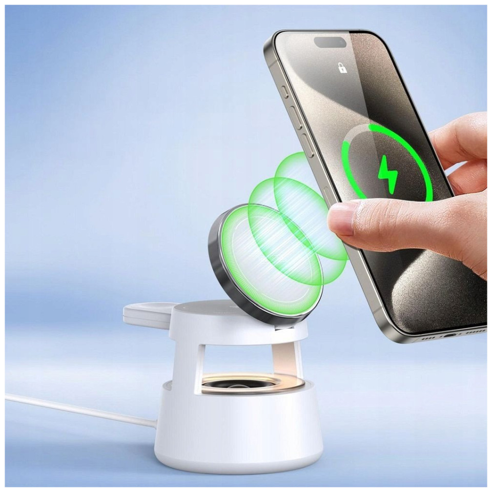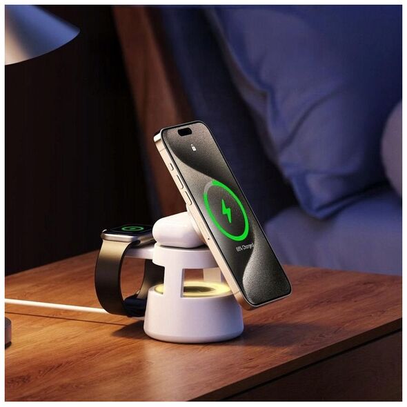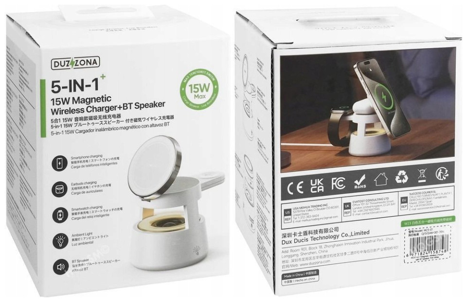 DUZZONA W23 - ασύρματος φορτιστής 5 σε 1 με ηχείο Bluetooth και φωτισμό, συμβατός με MagSafe 15W μαύρο