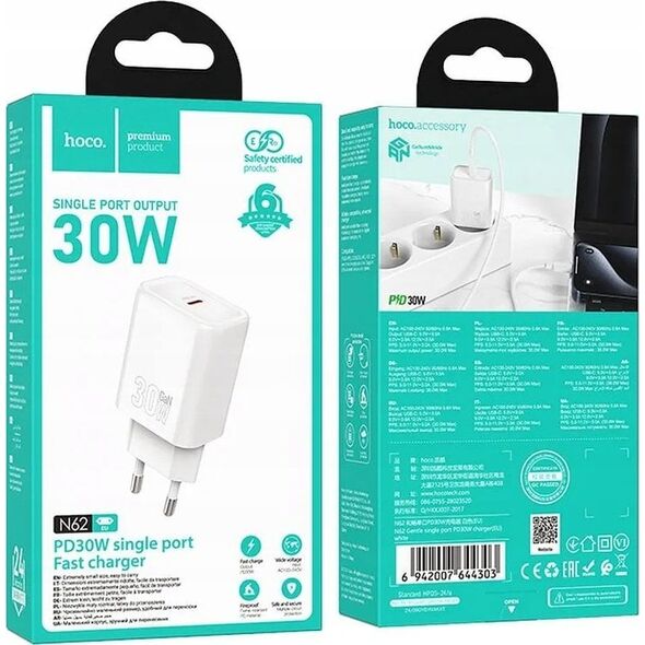HOCO φορτιστής τοίχου Τύπου C PD QC 30W N62 λευκός