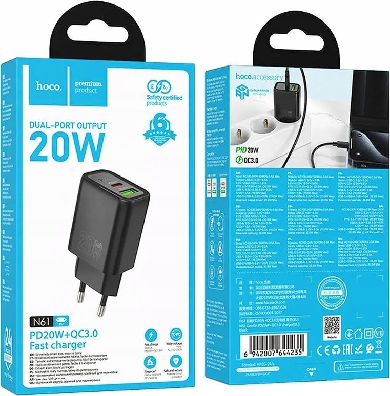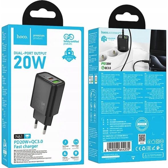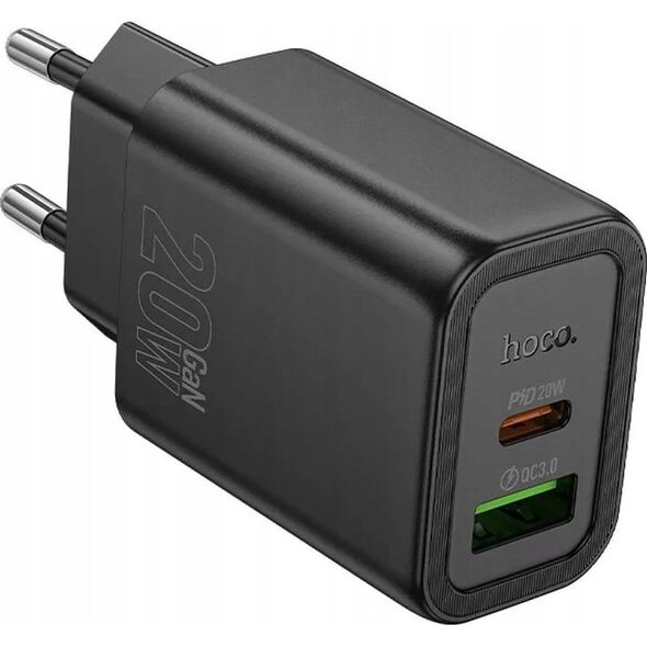 HOCO φορτιστής τοίχου USB A + Τύπος C PD QC3.0 3A 20W N61 μαύρο