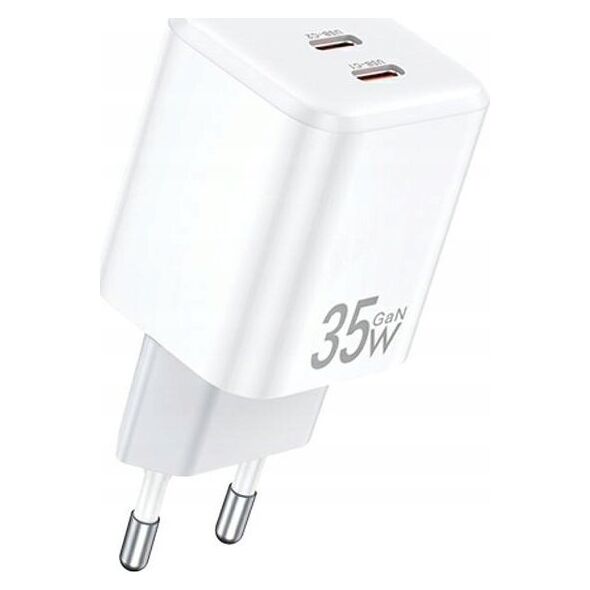 Φορτιστής Awei AWEI φορτιστής δικτύου PD65-EU 35W 2x USB-C λευκός/λευκό GaN