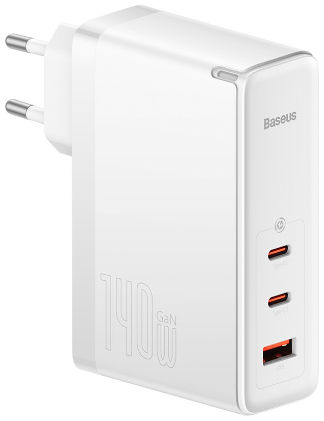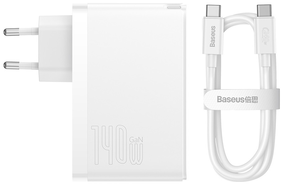 Φορτιστής Baseus Baseus φορτιστής τοίχου GaN5 Pro PD 140W 2x USB-C 1x USB λευκός + καλώδιο USB-C - USB-C 240W