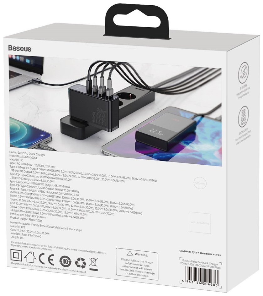 Είναι δύσκολο να φανταστεί κανείς τη λειτουργία ηλεκτρονικού εξοπλισμού χωρίς τη βοήθεια φορτιστών. Όποιος θέλει να συντομεύσει τη διαδικασία φόρτισης της μπαταρίας, να την κάνει πιο αποτελεσματική και εξοικονόμηση ενέργειας, θα πρέπει να ενδιαφέρεται για gadget νέας γενιάς. Ο Γρήγορος φορτιστής Baseus GaN2 Pro USB+C 100W EU είναι μια απόλυτη επιτυχία στην αγορά που έχει μια πραγματική ευκαιρία να φέρει την επανάσταση. Γιατί; Επειδή αντί για πυρίτιο, χρησιμοποιεί ενέργεια από νιτρίδιο του γαλλίου. Το GaN είναι ένα υλικό ημιαγωγών που όχι μόνο βελτιώνει την αποτελεσματικότητα της διαδικασίας φόρτισης, αλλά απαιτεί επίσης πολύ λιγότερη ενέργεια και καταλαμβάνει ελάχιστο χώρο. Ως εκ τούτου, είναι ιδανικό για φορητή χρήση, επίσης στη δουλειά ή όταν ταξιδεύετε σε όλο τον κόσμο. Είναι συμβατό με πρίζες σε όλο τον κόσμο όπου τα πρότυπα ηλεκτρικής τάσης κυμαίνονται από 100 έως 240 V.