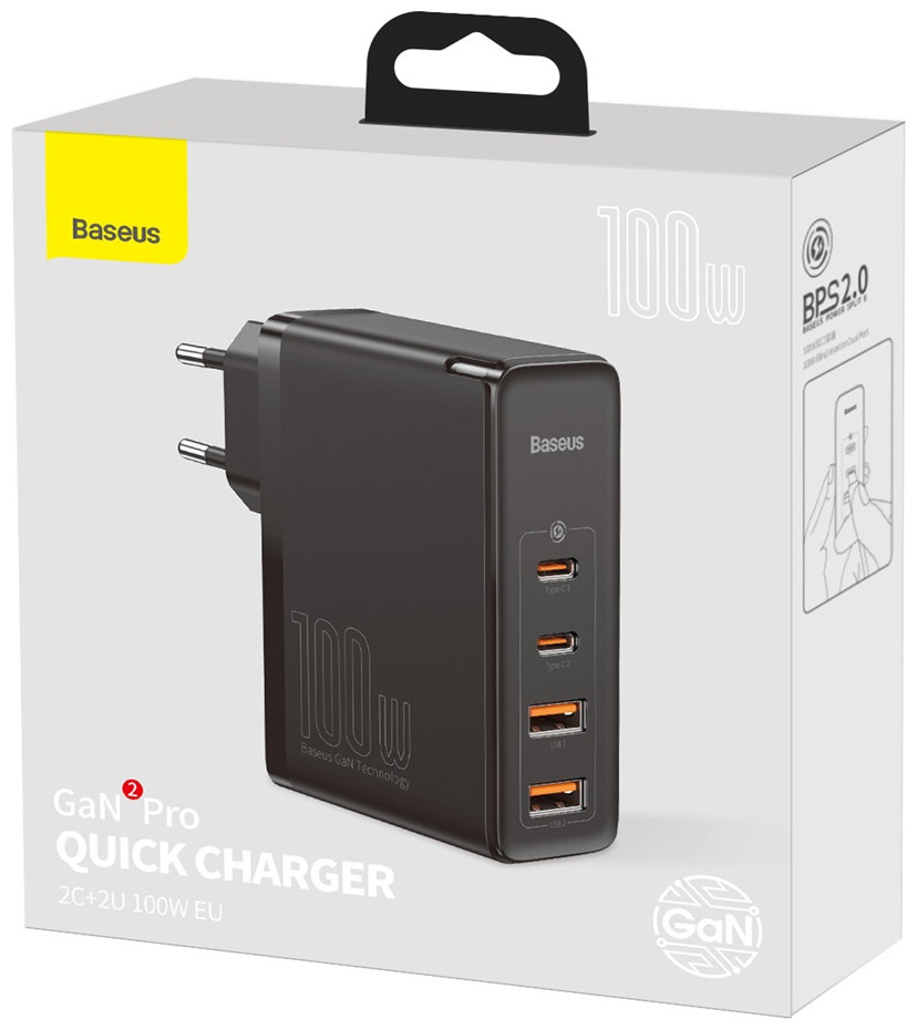 Γρήγορος φορτιστής Baseus GaN2 Pro PPS 100W 2x USB / 2x USB Type C Γρήγορη φόρτιση 4+ Παροχή ισχύος SCP FCP AFC (νιτρίδιο γαλλίου)