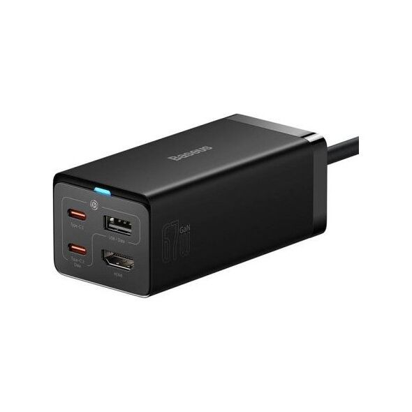 Baseus GaN5 Pro 2xUSB-C + USB + HDMI φορτιστής ρεύματος, 67W (μαύρο) Φορτιστής δικτύου Baseus GaN5 Pro 2xUSB-C + USB + HDMI, 67W (μαύρο) Χαρίστε στον εαυτό σας την άνεση του φορτιστή δικτύου Baseus GaN5 Pro! Με αυτό, μπορείτε όχι μόνο να φορτίσετε τις συσκευές σας, αλλά και να εμφανίσετε την εικόνα από το τηλέφωνο ή το φορητό υπολογιστή σας σε μεγαλύτερη οθόνη. Η βελτιωμένη τεχνολογία GaN εγγυάται πολλές ανέσεις και διασφαλίζει την ασφάλεια του προϊόντος. Ο φορτιστής είναι εξοπλισμένος με 2 θύρες USB-C, μία θύρα USB και μία θύρα HDMI. Είναι μικρό σε μέγεθος, αλλά έχει μεγάλη απόδοση. Το Baseus GaN5 Pro σίγουρα θα ανταποκριθεί στις προσδοκίες σας. Μικρό μέγεθος, μεγάλη ισχύς Μην περιμένετε έως ότου οι συσκευές σας είναι έτοιμες για χρήση ξανά και φορτίστε ταυτόχρονα αποτελεσματικά το φορητό υπολογιστή, το tablet, το τηλέφωνο ή το διακόπτη σας! Η ισχύς του φορτιστή Baseus GaN5 Pro φτάνει τα 67 W, επομένως είναι τέλειος για φόρτιση φορητού υπολογιστή. Η ταχύτητα είναι χαρακτηριστικό γνώρισμα της συσκευής - 30 λεπτά είναι αρκετά για να φτάσει η φόρτιση της μπαταρίας AppleBook Air 13" στο 42%. Ο ίδιος χρόνος χρειάζεται για να φορτιστεί το Apple 13 Pro Max στο 54%. Παρά το μικρό της μέγεθος, η συσκευή είναι εξαιρετικά αποδοτική. Με τον φορτιστή Baseus, οι μεγάλες αναμονές θα ανήκουν στο παρελθόν! Ένα gadget - πολλές χρήσεις Χρησιμοποιώντας το προϊόν Baseus, μπορείτε όχι μόνο να φορτίζετε πολλές συσκευές ταυτόχρονα, αλλά και να προβάλλετε φωτογραφίες, βίντεο ή παρουσιάσεις σε μεγάλη οθόνη. Η συσκευή λειτουργεί τόσο ως φορτιστής όσο και ως διανομέας. Επαγγελματική συνάντηση, πανεπιστήμιο, σπίτι - η συσκευή Baseus θα λειτουργεί σε όλες τις συνθήκες και περιστάσεις! Η ποιότητα εικόνας 4K@30Hz εξασφαλίζει μια εντυπωσιακή οπτική εμπειρία. Δεν χρειάζεται να ανησυχείτε για καθυστερήσεις. Θέλετε να εμφανίσετε την εικόνα από τον φορητό υπολογιστή σας στον προβολέα, αλλά η μπαταρία της συσκευής είναι χαμηλή; Κανένα πρόβλημα! Ο φορτιστής Baseus GaN5 Pro θα φορτίσει τη συσκευή σας και θα σας επιτρέψει να εμφανίσετε την εικόνα ταυτόχρονα. Δεν χρειάζεται πλέον να περιορίζεσαι. Βελτιωμένη τεχνολογία Χάρη στην τεχνολογία GaN, ο φορτιστής δικτύου Baseus είναι μικρός σε μέγεθος, υψηλή ισχύς, ανθεκτικός στις αυξήσεις θερμοκρασίας και χαρακτηρίζεται από υψηλή ενεργειακή απόδοση. Εν τω μεταξύ, η τεχνολογία BPS II προσαρμόζει αυτόματα την ισχύ, την τάση εξόδου και το ηλεκτρικό ρεύμα στις φορτισμένες συσκευές και σας επιτρέπει να φορτίζετε γρήγορα 2 συσκευές ταυτόχρονα. Ο φορτιστής Baseus GaN5 Pro είναι εξαιρετικά αποτελεσματικός και η χρήση του είναι απολύτως ασφαλής. Προσοχή στη λεπτομέρεια Για να κάνετε τη χρήση του προϊόντος Baseus όσο το δυνατόν πιο βολική για εσάς, έχει ληφθεί μέριμνα για κάθε λεπτομέρεια. Το σετ περιλαμβάνει ένα καλώδιο USB4 που επιτρέπει τη μεταφορά δεδομένων στα 40 Gbps και τη φόρτιση με ισχύ 100 W, και ένα καλώδιο προέκτασης 1,5 m Όλα για τη διευκόλυνσή σας! Ο φορτιστής είναι εξοπλισμένος με 4 θύρες: USB-C1 (67 W) επιτρέπει γρήγορη φόρτιση φορητών υπολογιστών, tablet και τηλεφώνων. Το USB-C2 (67 W) επιτρέπει τη φόρτιση και τη μεταφορά δεδομένων. Χάρη στη θύρα HDMI, μπορείτε να εμφανίσετε την εικόνα από την επιλεγμένη συσκευή σε προβολέα ή τηλεόραση. Μπορείτε να συνδέσετε ένα ποντίκι, ένα πληκτρολόγιο ή έναν προσαρμογέα μέσω της θύρας USB. Είναι επίσης δυνατή η φόρτιση συσκευών χαμηλού ρεύματος όπως ακουστικά. Ασφάλεια χρήσης Η ασφάλεια αποτελεί προτεραιότητα, γι' αυτό ο φορτιστής Baseus GaN5 Pro δια