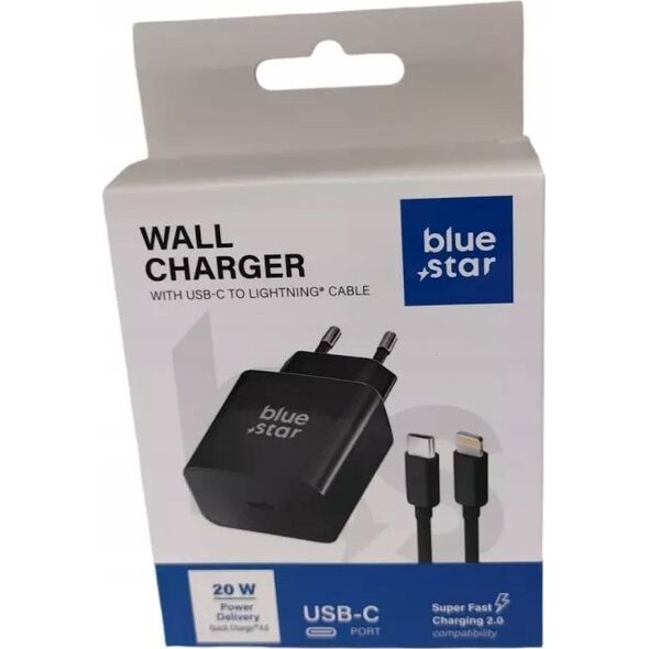 Φορτιστής Blue Star Φορτιστής τοίχου BLUE STAR 3A 20W Καλώδιο Τύπου C + Τύπου C για Lightning PD QC4.0 TFB-TC-20WPD μαύρο 13966813 5903396267116