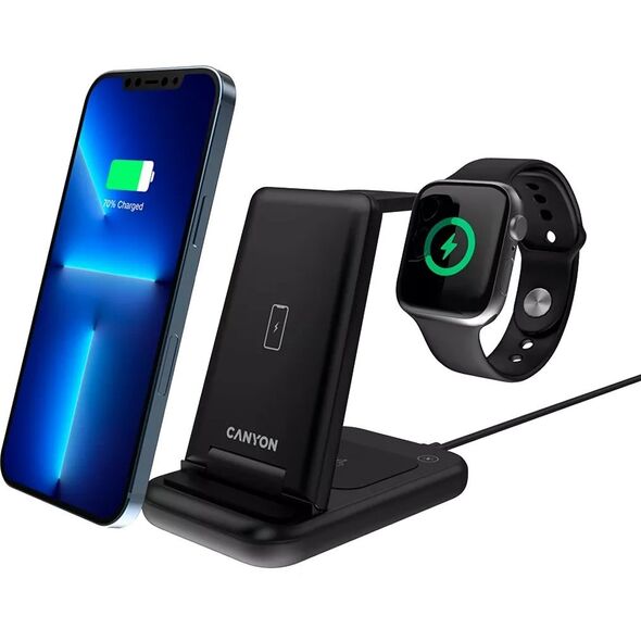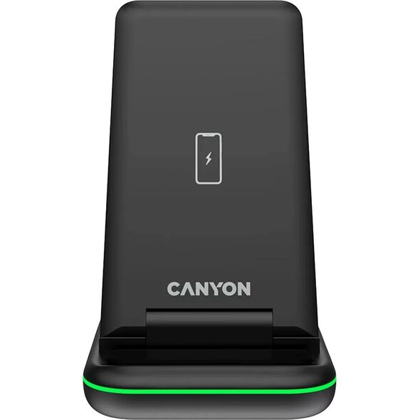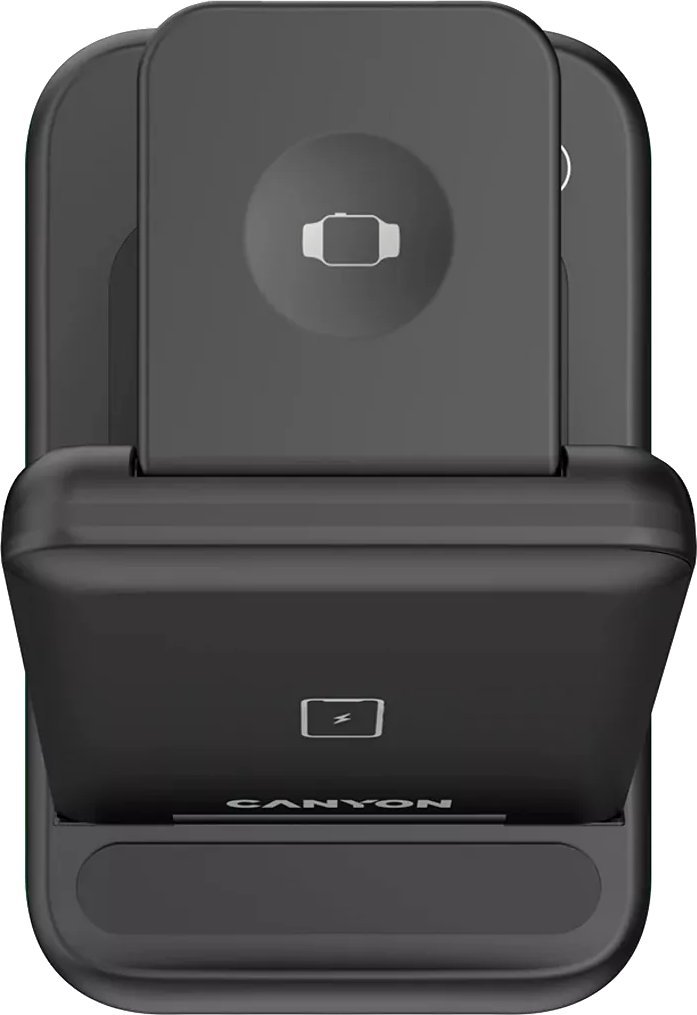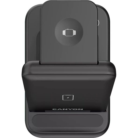 Φορτιστής Canyon CANYON WS-304, Αναδιπλούμενος ασύρματος φορτιστής 3 σε 1, με κουμπί αφής για φως τρεχούμενου νερού, Είσοδος 9V/2A, 12V/1.5A Έξοδος 15W/10W/7.5W/5W, Καλώδιο Type c σε USB-A μήκους 1.2m, με βύσμα QC18W EU, 132.51*75*28.58mm, 0.168Kg, Μαύρο