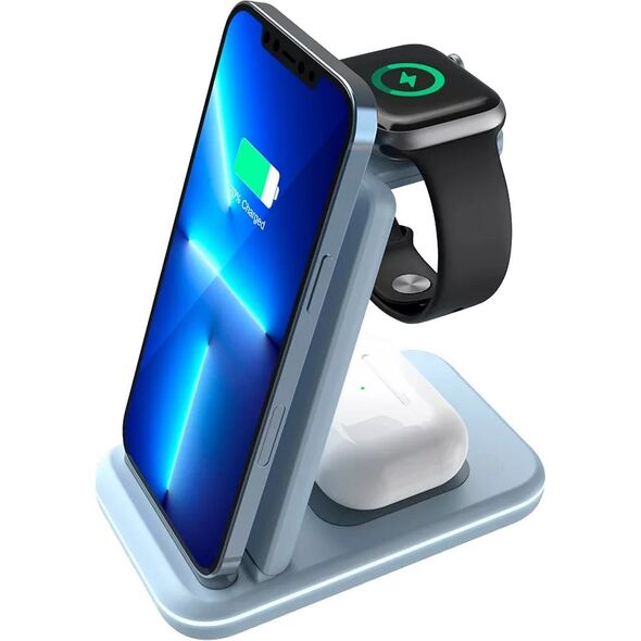 Φορτιστής Canyon CANYON WS-304, Αναδιπλούμενος 3σε1 Ασύρματος φορτιστής, με κουμπί αφής για φως τρεχούμενου νερού, Είσοδος 9V/2A, 12V/1.5A Έξοδος 15W/10W/7.5W/5W, Καλώδιο Type c σε USB-A μήκους 1.2m, με βύσμα QC18W EU, 132.51*75*28.58mm, 0.168Kg, Μπλε