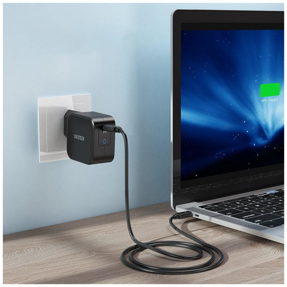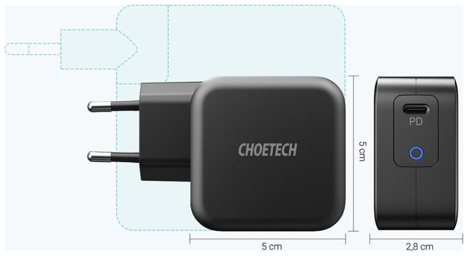 Mała i szybka ładowarka sieciowa Choetech Q6006 ze złączem USB Typ C i standardem szybkiego ładowania Power Delivery o mocy 61 W – technologia GaN – czarna (Q6006-EU) Ta kompaktowa ładowarka z portem USB Typ C została wykonana w technologii GaN. Jest więc wydajniejsza, mniejsza i bezpieczniejsza niż standardowe ładowarki oparte na krzemowych podzespołach. Naładuje zarówno Twój smartfon, zegarek, głośnik Bluetooth czy czytnik e-booków, jak i laptop, który wymaga zasilania o mocy do 61 W. Ładowarkę Choetech Q6006 możesz zabrać, gdzie tylko chcesz! O to, aby zasilanie energią trwało naprawdę krótko, zadbają dwa standardy szybkiego ładowania: Power Delivery 3.0 i Quick Charge 3.0. Twoje sprzęty obsługują te technologie? Choetech Q6006 jest dla Ciebie! Specyfikacja: Marka: Choetech Model: Q6006 Port: USB Typ C Standard szybkiego ładowania: Power Delivery 3.0, Quick Charge 3.0 Prąd wejściowy: AC 100-240V; 50/60Hz; 1.5A Prąd wyjściowy: DC 5V / 3A, 9V / 3A, 12V / 3A, 15V / 3A, 20V / 3A, 20.3V / 3A Moc maksymalna: 61W Wymiary: 83 x 50 x 28 mm Waga: 155 g Kolor: czarny Najważniejsze zalety ładowarki sieciowej Choetech Q6006: Zapewnia bezpieczniejsze i wydajniejsze ładowanie – ładowarka z portem USB Typ C została wykonana w technologii GaN Możesz zasilać nią wiele modeli urządzeń przenośnych, m.in. smartfony, słuchawki lub tablety Naładuje także laptopy, które wymagają zasilania 61 W (jak MacBook Pro 2020 13” czy MacBook Air 2020) Przyspieszy proces ładowania dzięki standardowi Power Delivery 3.0 i Quick Charge 3.0 (jeśli Twoje urządzenia są z nimi kompatybilne) Zmieści się nawet w kieszeni! Jej kompaktowy rozmiar zapewnia maksymalną mobilność Najnowsza technologia dla Twojej wygody Zasilacz Choetech Q6006 został wykonany w technologii GaN. Dzięki zastosowaniu azotku galu ładowarka jest szybsza, mniejsza i bezpieczniejsza. Lepiej przewodzi ciepło, dzięki czemu dłużej pozostaje chłodna. Zmniejsza też zużycie energii i utrzymuje wysoką wydajność ładowania. Szybciej, jeszcze szybciej! Ładowarka jest kompatybilna z wieloma urządzeniami, które obsługują standard szybkiego ładowania Power Delivery 3.0 lub Quick Charge 3.0: od smartfonów i tablety po laptopy. Zastosowane technologie znacznie przyspieszą proces zasilania, jednocześnie oszczędzając Twój czas. Ultrakompaktowa forma Zaawansowana technologia azotku galu sprawia, że ładowarka jest o 50% mniejsza niż oryginalna ładowarka 61 W do MacBooka. Mierzy tylko 83 x 50 x 28 mm! Możesz ją więc mieć przy sobie na co dzień lub zabrać do torby podróżnej i udać się, gdziekolwiek chcesz. Uniwersalnie dla wielu sprzętów Zasilacz Choetech Q6006 będzie działał z wieloma urządzeniami przenośnymi: słuchawkami, tabletami, laptopami czy smartfonami, m.in. z iPad Pro, MacBook Pro 2020, iPhone 13 / 13 Pro / 13 Pro Max czy Samsung Galaxy S21/ S20 (przed zakupem sprawdź specyfikację zasilania swojego urządzenia). Wytrzymała i bezpieczna Konstrukcja ładowarki jest wyprodukowana z ognioodpornych materiałów ABS i PC. Wbudowany inteligentny układ scalony automatycznie identyfikuje napięcie i prąd wymagane przez urządzenie. Nie musisz więc obawiać się przetężenia, przepięcia, przegrzania lub zwarcia. CN: 8504 40 30 90 - Ładowarki USB do telefonów EAN: 6971824975536 Głębokość opakowania towaru w cm: 9,4 Ilość złączy wyjściowych: 1 Kod Producenta: Q6006-EU Kolor wiodący: Czarny Maksymalne natężenie prądu (A): 3 Maksymalne obciążenie (W): 61 MOQ: 108 MULT_OQ: 108 Rodzaj ładowarki: Sieciowa Standard szybkiego ładowania: Qualcomm Quick Charge, USB Power Delivery Szerokość opakowania towaru w cm: 11,1 Typ opakowania: Pudełko Typ złącza: USB Typ C (żeński) Tłumaczenia: ger, eng, fre, ita Waga gabarytowa w gramach: 49.5 Wysokość opakowania towaru w cm: 3,5