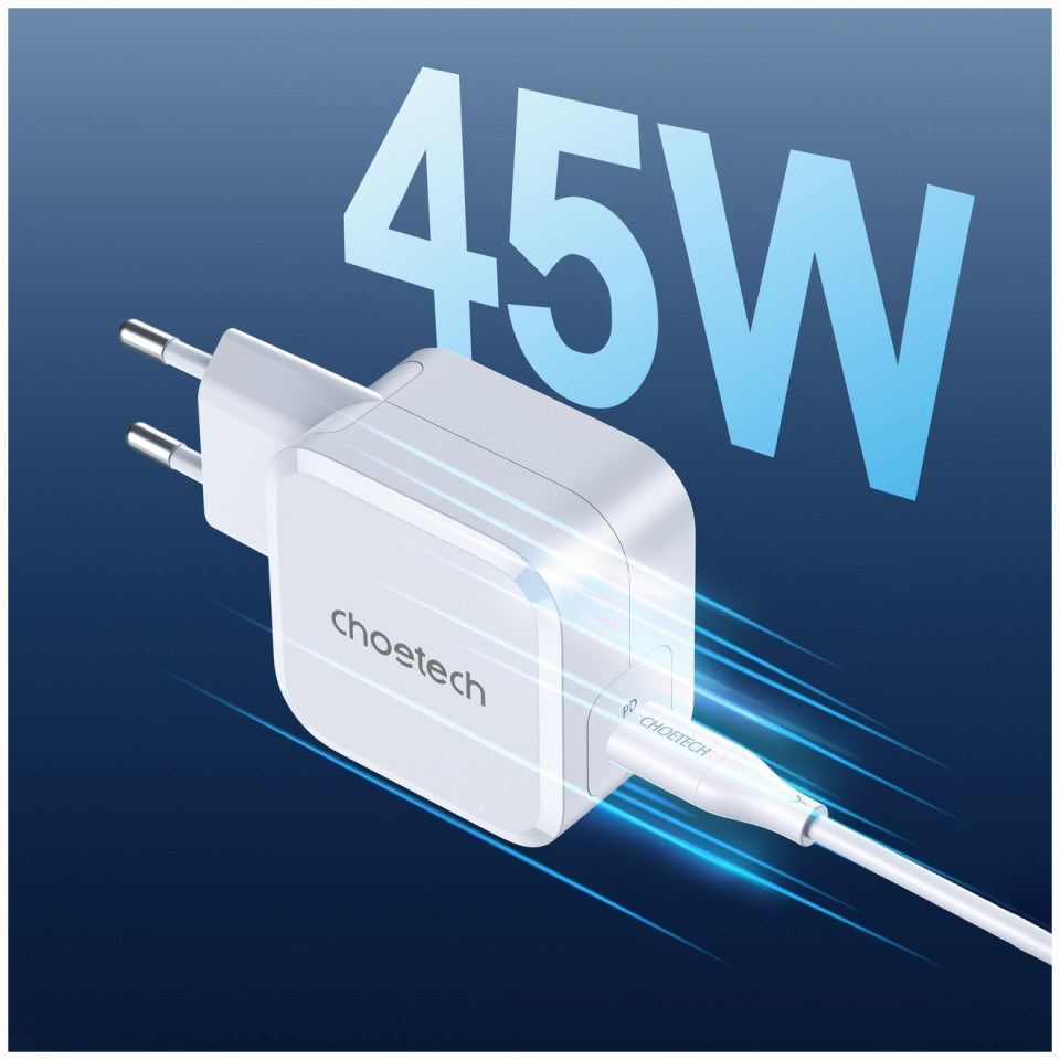 Γρήγορος φορτιστής Choetech USB C 45W PPS / PD λευκό (PD8007) Ο γρήγορος φορτιστής είναι ένα αξεσουάρ που θα είναι χρήσιμο σε όλους. Το προϊόν Choetech μπορεί να φορτίσει ηλεκτρονικό εξοπλισμό με ισχύ έως και 45W. Με αυτόν τον φορτιστή, μπορείτε να φορτίσετε τις περισσότερες συσκευές που είναι διαθέσιμες στην αγορά. Οι πολυάριθμες ενσωματωμένες διασφαλίσεις διασφαλίζουν ότι η ενέργεια μεταφέρεται ομαλά και χωρίς κίνδυνο αστοχίας. Επιπλέον, ο φορτιστής υποστηρίζει το πρωτόκολλο φόρτισης PPS Προδιαγραφές: Μάρκα: Choetech