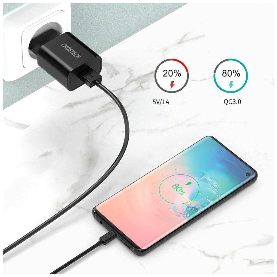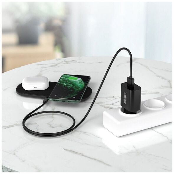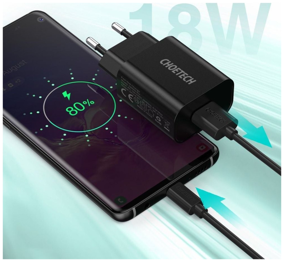 Choetech ładowarka sieciowa USB 18W Power Delivery czarny (Q5003-EU) Inteligentna ładowarka sieciowa ze złączem europejskim oraz wsparciem dla szybkiego ładowania Power Delivery. Kompaktowy gadżet wyposażony w port USB. Doskonały do odnawiania energii urządzeń mobilnych takich jak smartfony i tablety. Błyskawiczne odnawianie energii – Dzięki błyskawicznemu ładowaniu PD, Twój sprzęt może odzyskać pełnię mocy nawet kilka razy szybciej niż przy standardowych ładowarkach. Wysokiej jakości materiały – Wykonana z połączenia ogniotrwałych i wytrzymałych materiałów: PC oraz ABS. Odpornych na upadki i nadmierne nagrzewanie. Inteligentny chip – Akcesorium posiada inteligentny układ zarządzania dopasowujący optymalne napięcie do konkretnego sprzętu. Twoje urządzenie dostanie dokładnie tyle prądu ile potrzebuje, aby odzyskać siły w jak najkrótszym czasie, bez jednoczesnego ryzyka uszkodzenia baterii. Kilka poziomów zabezpieczeń – Między innymi przed przeładowaniem, przegrzaniem i krótkimi spięciami. Kompletna ochrona zarówno akcesorium, jak i ładowanych sprzętów. Szeroki zakres napięcia zasilania – Zakres napięcia na poziomie 100 – 240V pozwala na bezproblemowe korzystanie z adaptera na całym świecie. Z odpowiednią przejściówką, możesz zabrać go w każdą podróż! Specyfikacja: Marka: Choetech Nazwa: Szybka ładowarka sieciowa Prąd wejściowy: AC 100 - 240 V~, 50 / 60 Hz, 0,5 A Prąd wyjściowy: 3.6-6V/3A, 6-9V/2A, 9-12V/1.5A Maksymalne obciążenie: 18W Materiał: ABS + PC CN: 8504 40 90 - Ładowarki USB do telefonów EAN: 6971824975260 Głębokość opakowania towaru w cm: 10,1 ID: 74089-uniw Ilość złączy wyjściowych: 1 Kod Producenta: Q5003-EU Kolor wiodący: Czarny Maksymalne obciążenie (W): 18 Przewód w zestawie: Nie Rodzaj ładowarki: Sieciowa Standard szybkiego ładowania: USB Power Delivery Szerokość opakowania towaru w cm: 13,7 Typ opakowania: Pudełko Typ złącza: USB Typ A (żeński) Tłumaczenia: ger Waga gabarytowa w gramach: 65 Wysokość opakowania towaru w cm: 3,05