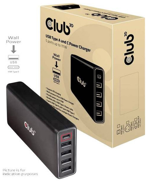USB Type A and C Charger 5 Ports for 111WCAC-1903 - Club 3D USB Type A and C Chargers 5 Ports for 111W, with 4x USB Type A and 1x USB Type C Socket είναι σχεδιασμένο για χρήστες που θέλουν μόνο 1 φορτιστή για PC/laptop /tablet/smartphone, αλλά και χρήση του σταθμού σύνδεσης. Έρχεται με ξεχωριστό καλώδιο τροφοδοσίας, ώστε να μπορεί να συνδεθεί σε πρίζα τοίχου Χρησιμοποιώντας την τεχνολογία φόρτισης PowerDelivery, ο φορτιστής παρέχει και τις δύο λειτουργίες φόρτισης μέσω 4x θύρας USB Type A και 1x USB Type C ή να φορτίσετε το προϊόν με τον σωστό χειρισμό. Η απλότητα συμπληρώνει το καλώδιο USB C Φόρτιση Χρησιμοποιώντας την τεχνολογία φόρτισης PD και τη λειτουργία φόρτισης μέσω διασυνδέσεων USB Type A και/ή C, ο φορτιστής Club3D προσφέρει ευέλικτη και μοναδική λειτουργικότητα με 5 θύρες. Τα προϊόντα θα φορτίζονται έως και 111 W. Οι ενσωματωμένοι μηχανισμοί ασφαλείας προστατεύουν από υπερφόρτωση, υπερφόρτιση και υπερθέρμανση.{Cable length} Δεν ισχύει. {Cable length} Δεν ισχύει. {Cable length} Δεν ισχύει. {Cable length} Δεν ισχύει. {Amperage} 4,8 A . {Amperage} 4,8 A . {Amperage} 4,8 A . {Amperage} 4,8 A . {Τύπος φορτιστή} Βάση σύνδεσης . {Τύπος φορτιστή} Βάση σύνδεσης . {Τύπος φορτιστή} Βάση σύνδεσης . {Τύπος φορτιστή} Βάση σύνδεσης . {Cable connector type} Δεν ισχύει . {Cable connector type} Δεν ισχύει . {Cable connector type} Δεν ισχύει . {Cable connector type} Δεν ισχύει . {Αριθμός εξόδων USB-A} 4 . {Αριθμός εξόδων USB-A} 4 . {Αριθμός εξόδων USB-A} 4 . {Αριθμός εξόδων USB-A} 4 . {Βάρος [g]} 220 . {Βάρος [g]} 220 . {Βάρος [g]} 220 . {Βάρος [g]} 220 . {Αριθμός εξόδων USB-C} 1 . {Αριθμός εξόδων USB-C} 1 . {Αριθμός εξόδων USB-C} 1 . {Αριθμός εξόδων USB-C} 1 . {Quick Charge} Ναι. {Quick Charge} Ναι. {Quick Charge} Ναι. {Quick Charge} Ναι. {Χρώμα} Μαύρο. {Χρώμα} Μαύρο. {Χρώμα} Μαύρο. {Χρώμα} Μαύρο. {Αριθμός φορτισμένων συσκευών} 5 . {Αριθμός φορτισμένων συσκευών