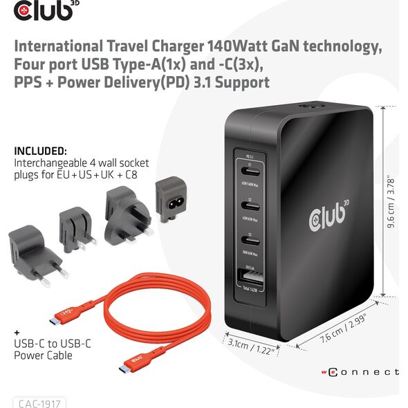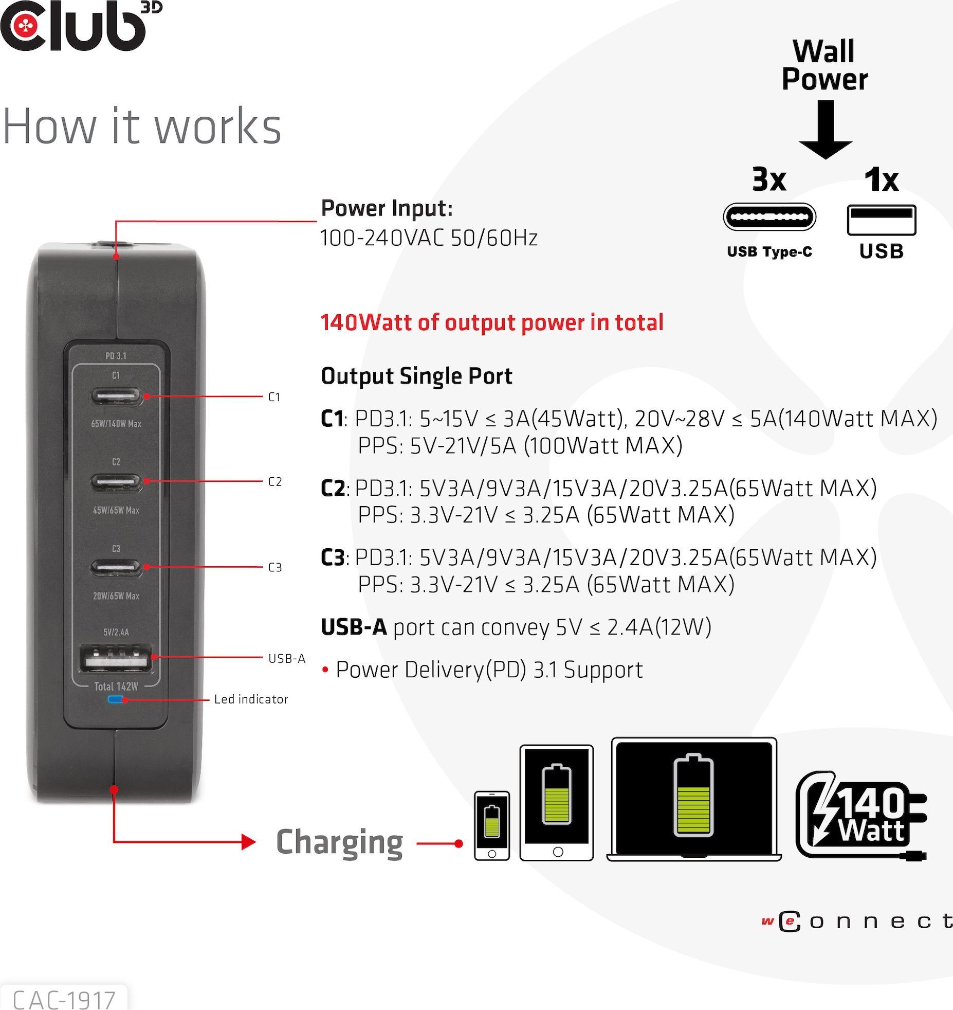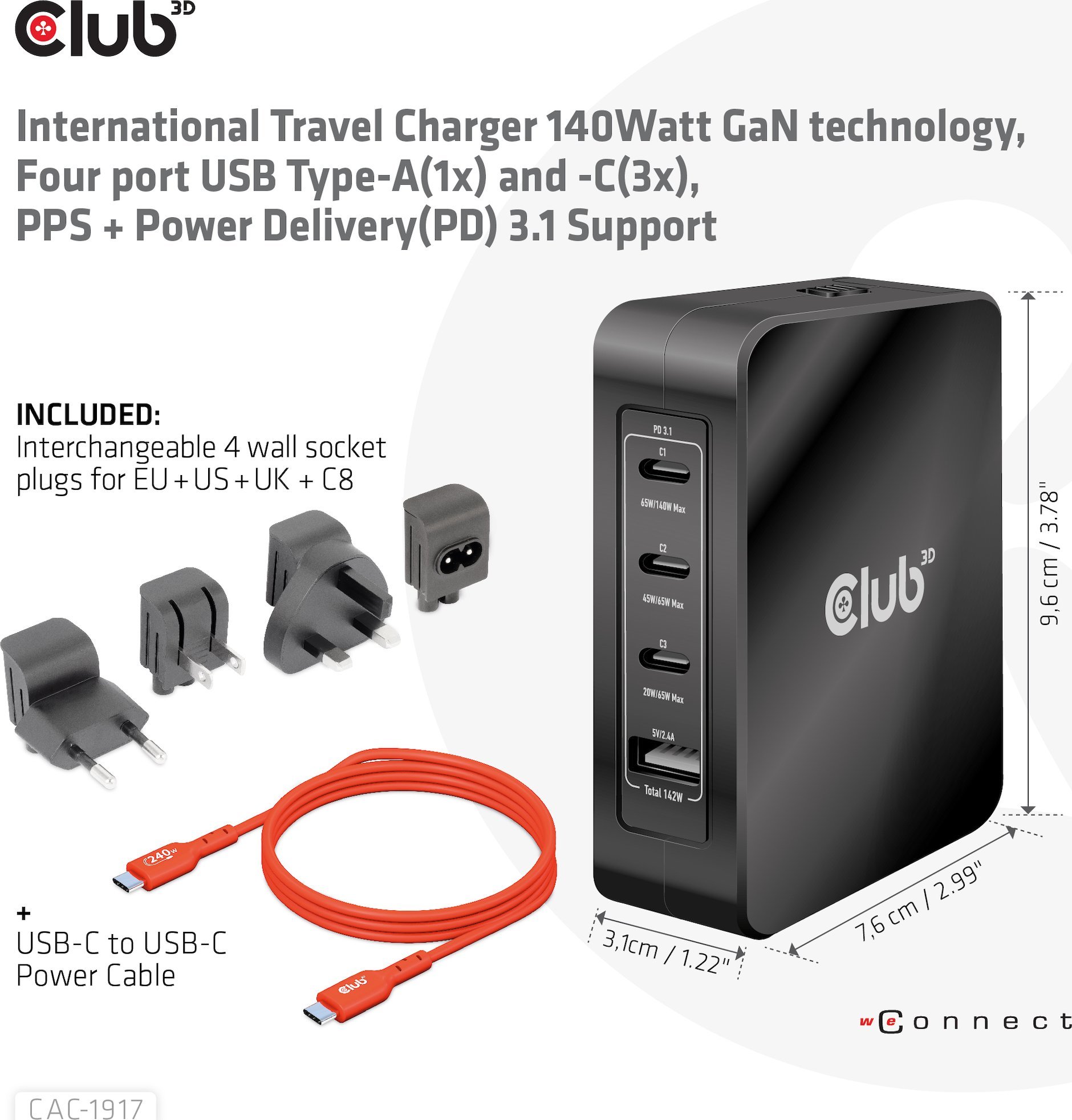 Φορτιστής Club 3D CLUB3D CAC-1917 μονάδα τροφοδοτικών 140 W