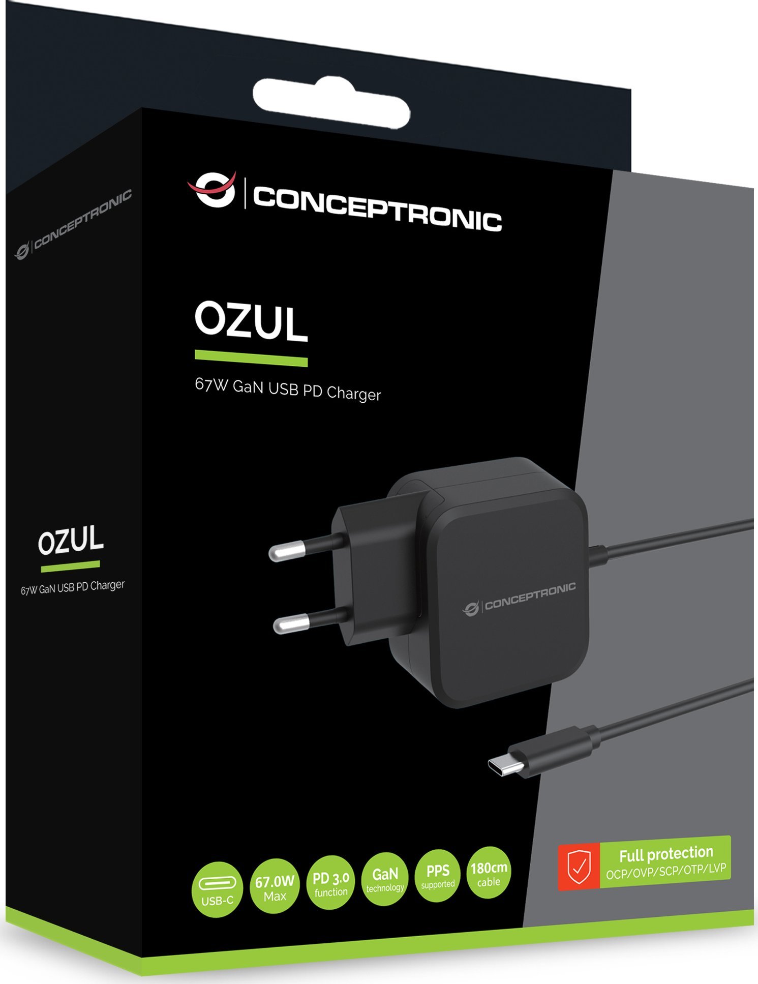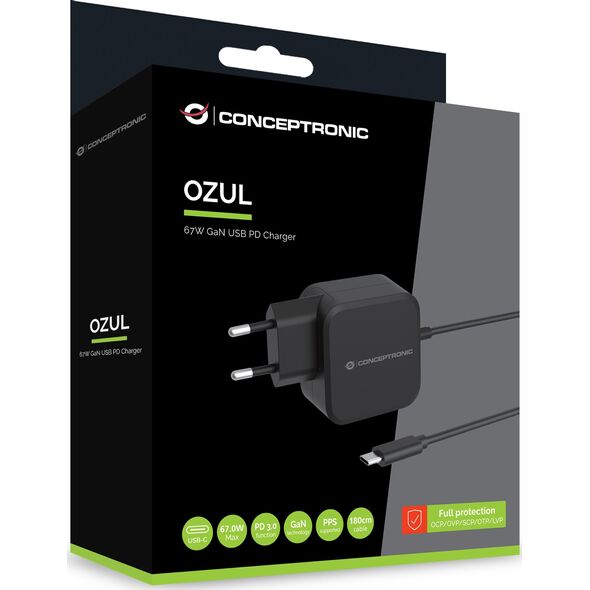 Φορτιστής Conceptronic CONCEPTRONIC Ladegerät 1Port 67W, GaN USB-C Desk PD sw