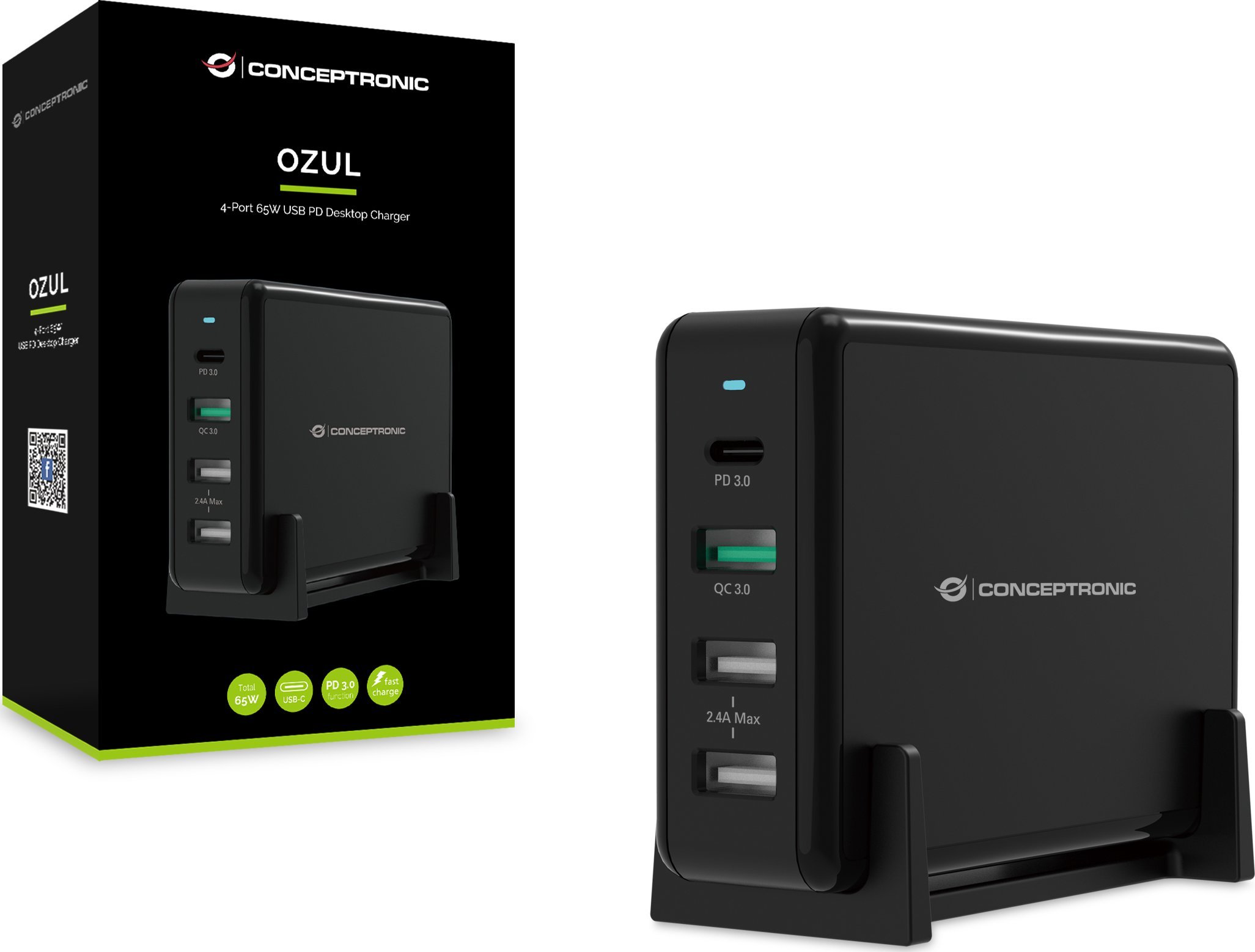 Φορτιστής Conceptronic CONCEPTRONIC Ladegerät 4Port 65W,1xUSB-C/3xUSB-A Desk PD sw