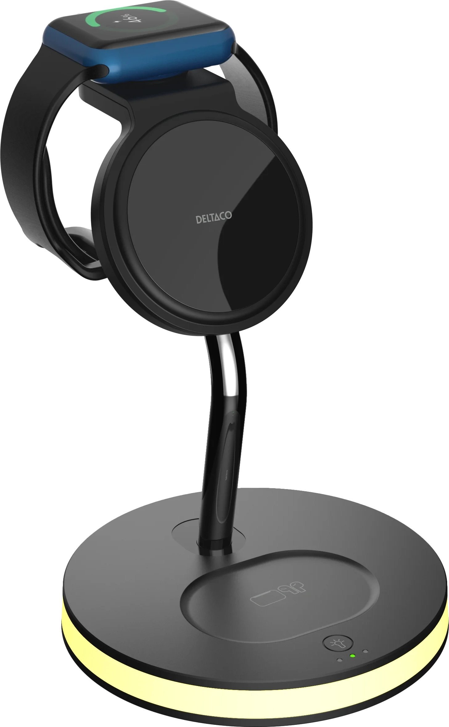 Φορτιστής Deltaco 3-σε-1 μαγνητικός ασύρματος φορτιστής DELTACO, τηλέφωνο/TWS/ρολόι, LED φως / QI-1041