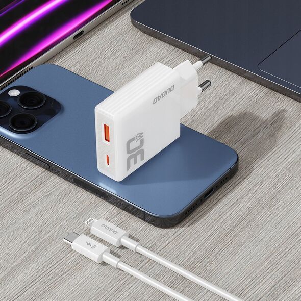 Ładowarka sieciowa GaN Dudao A30EUL 30W USB-A / USB-C - biała + kabel USB-C - Lightning