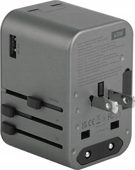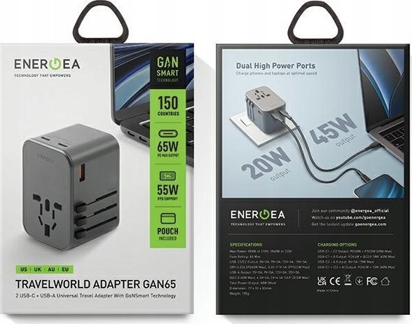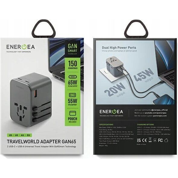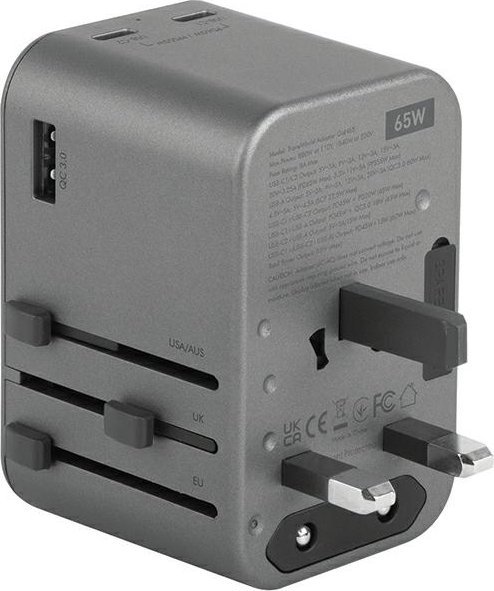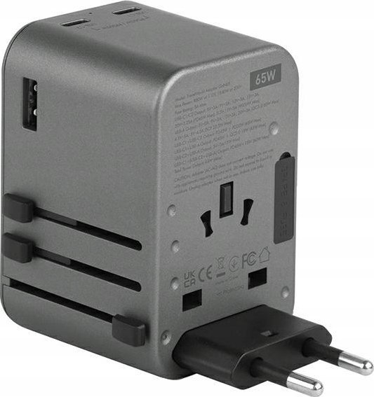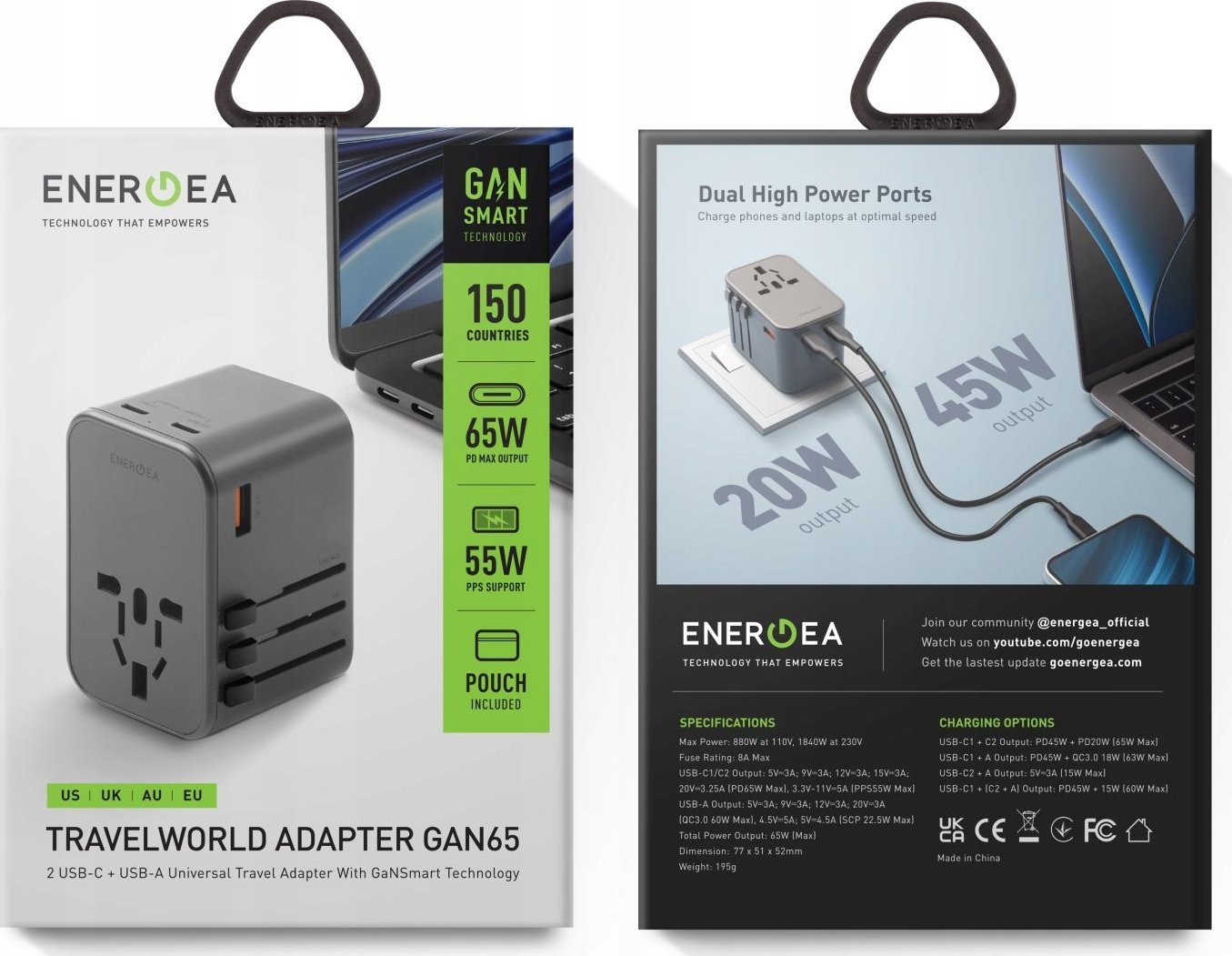 Φορτιστής Energea ENERGEA φορτιστής τοίχου 1xUSB+2xUSB-C PD-PPS-QC 3.0 65W 1A2C αντάπτορας 4 σε 1 US/UA/EU/UK γκρι/gunmetal Travelworld Adapter GaN65W