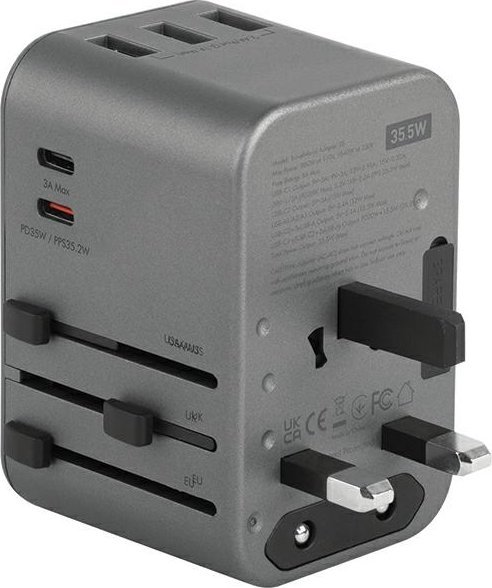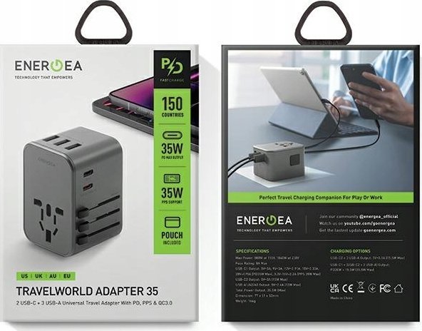 Φορτιστής Energea ENERGEA φορτιστής τοίχου 3xUSB+2xUSB-C PD-PPS-QC 3.0 35.5W 3A2C αντάπτορας 4 σε 1 US/UA/EU/UK γκρι/μεταλλικό Travelworld