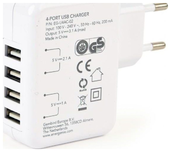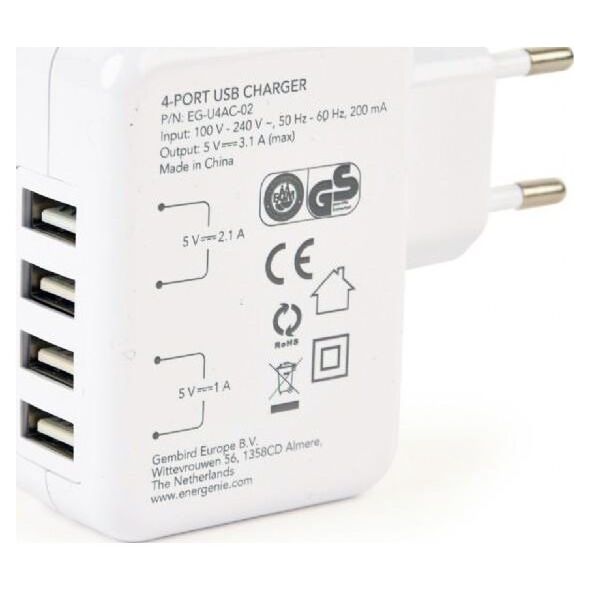 Επιτοίχιος φορτιστής USB 4 θυρών