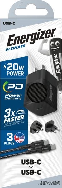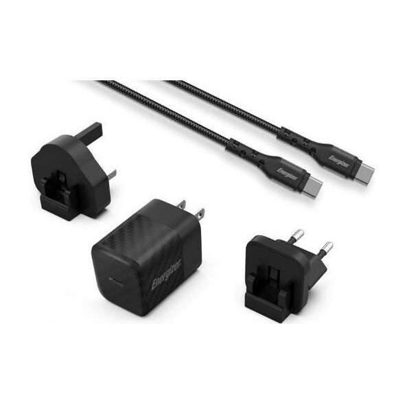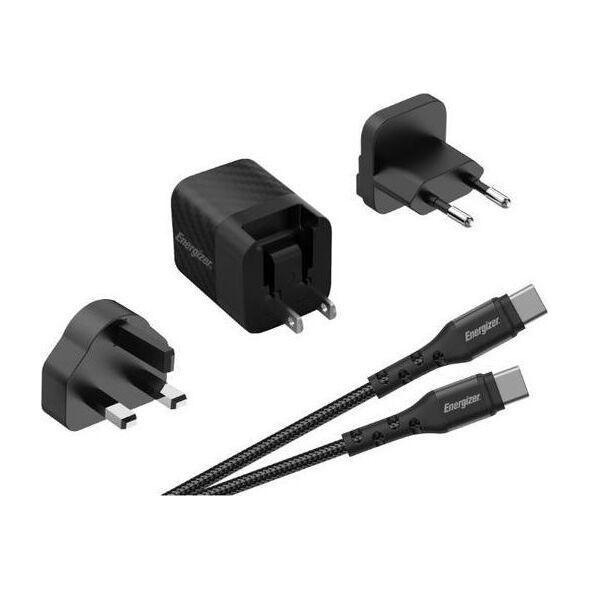 Φορτιστής Energizer Energizer Ultimate - Πολύπριζος φορτιστής δικτύου EU / UK / US GaN 20W PD + καλώδιο USB-C (Μαύρο)