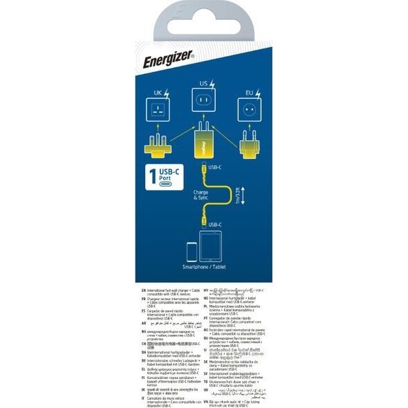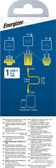 Szybka i niezawodna ładowarka sieciowa Energizer Ultimate wyposażona w port USB-C o maksymalnej mocy wyjściowej 20W.Półprzewodnik (azotek galu) użyty w ładowarce sprawia, że efektywnie wykorzystuje energię (nie nagrzewa się znacząco) dzięki czemu jest bardziej ekologiczna i bezpieczniejsza od tradycyjnych ładowarek.Technologia Power Delivery dostosowuje napięcie i natężenie ładowania do maksymalnych wartości, które zapewniają bezpieczne ładowanie urządzenia. Rozwiązanie to pozwala używać tej samej ładowarki do ładowania różnych telefonów, a także tabletów oraz innych urządzeń mobilnych.W zestawie znajdują się trzy adaptery, które umożliwiają podłączenie ładowarki do gniazda sieciowego na terytorium UE / UK / US oraz kabel USB-C.Cechy produktu: