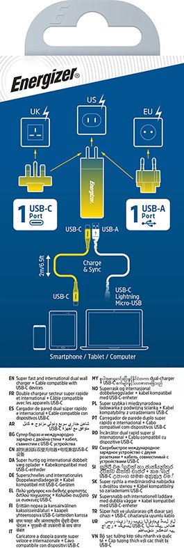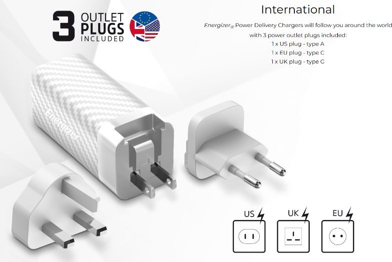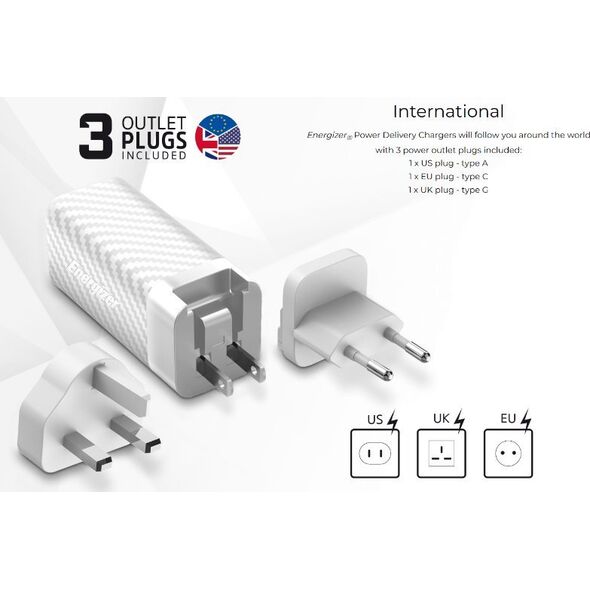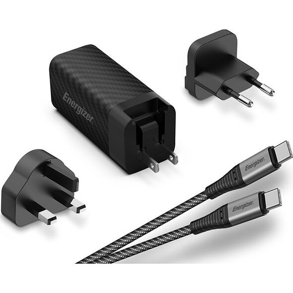 Φορτιστής Energizer Energizer Ultimate - Πολύπριζο Φορτιστής Δικτύου ΕΕ / ΗΒ / ΗΠΑ GaN USB-C & USB-A 65W PD + Καλώδιο USB-C (Μαύρο)
