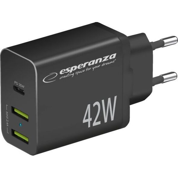 Φορτιστής Esperanza EZC106K Esperanza φορτιστής δικτύου 42w usb-c pd 30w / 2x usb-a 12w