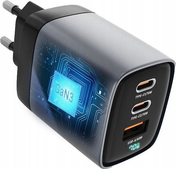 Φορτιστής ForCell FORCELL F-ENERGY GaN III VT-37 φορτιστής δικτύου με οθόνη LCD 2 x Τύπος C + USB A PD QC4.0 SAM SFC2.0 3,45A 70W γκρι
