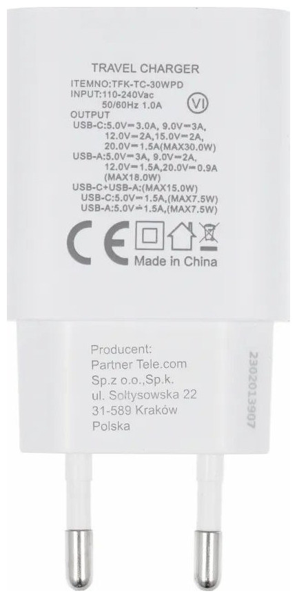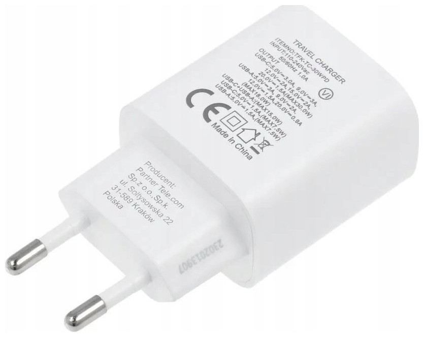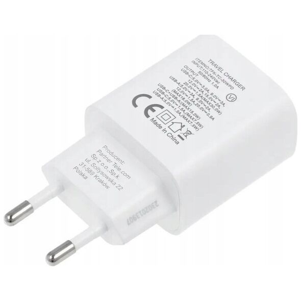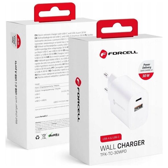 Φορτιστής ForCell FORCELL F-ENERGY TFK-TC-30WPD φορτιστής δικτύου Τύπου C + USB A PD QC4.0 3A 30W λευκός