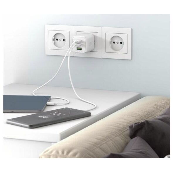 Φορτιστής Goobay goobay USB-C γρήγορος φορτιστής Nano, PD, GaN, 65 watts (λευκό, 1x USB-A, 2x USB-C PD, Charge 3.0)