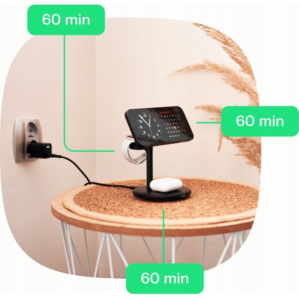 Φορτιστής Green Cell Greencell MagScape Ασύρματος Φορτιστής 3 σε 1 MagSafe για iPhone, Apple Watch, AirPods, Smartwatch και ασύρματα ακουστικά