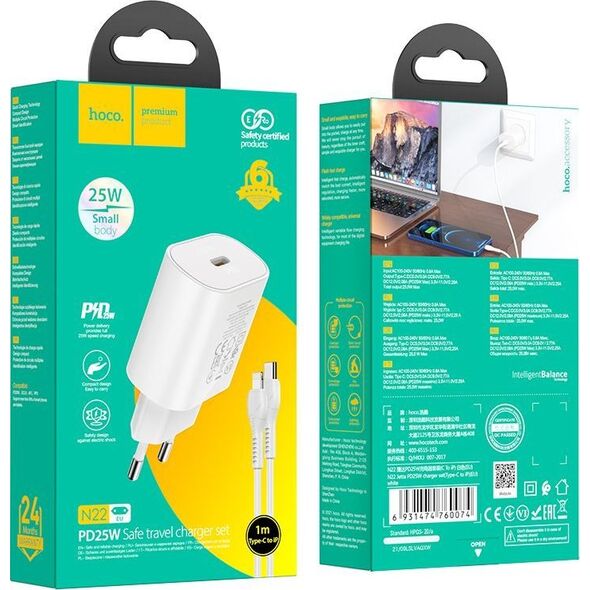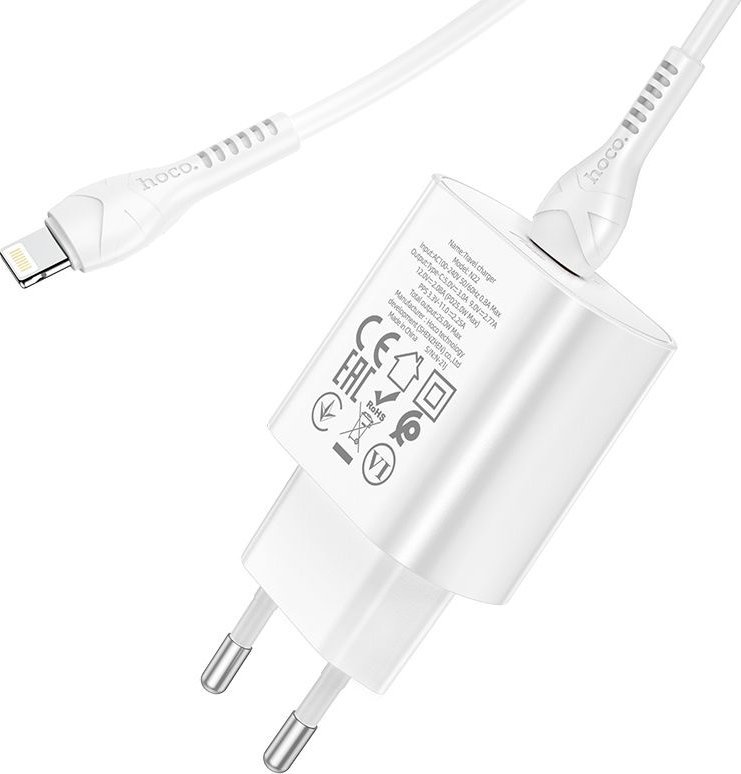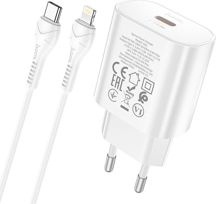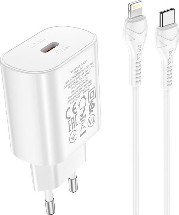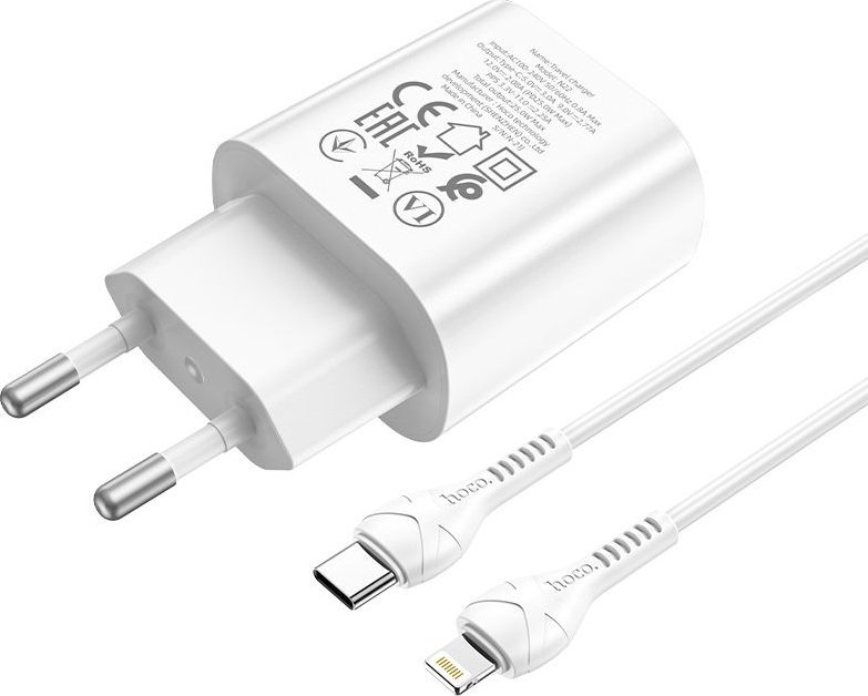 Φορτιστής Hoco HOCO ΦΟΡΤΙΣΤΗΣ ΣΕΙΡΑΣ ΤΥΠΟΥ C PD 25W QC3.0 ΜΕ ΚΑΛΩΔΙΟ ΓΙΑ LIGHTNING 8-PIN JETTA N22 ΛΕΥΚΟ