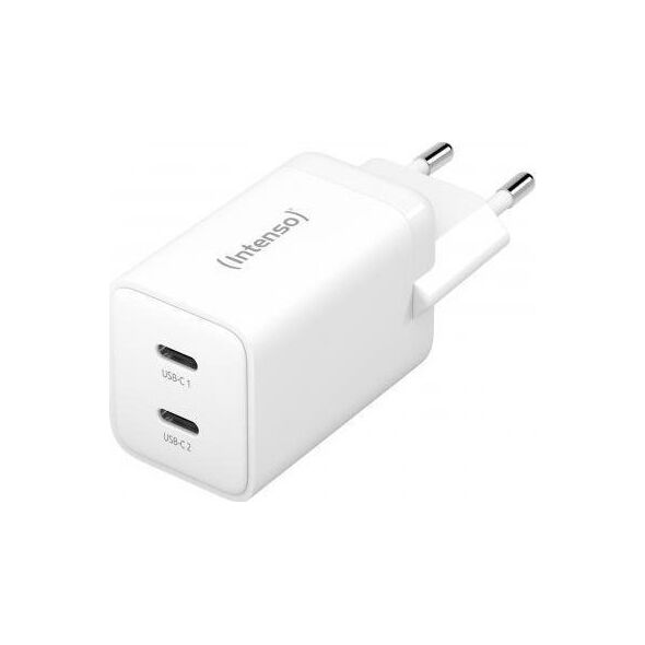 Intenso POWER ADAPTER 2XUSB-C GAN/7804012. Typ ładowarki: Wewnętrzna, Rodzaj zasilania: Prąd przemienny, Kompatybilność ładowarki: Uniwersalne. Napięcie: 100-240 V, Napięcie wyjściowe (max): 20 V. Ilość portów USB typu C: 2, Szybkie ładowanie. Kolor produktu: Biały