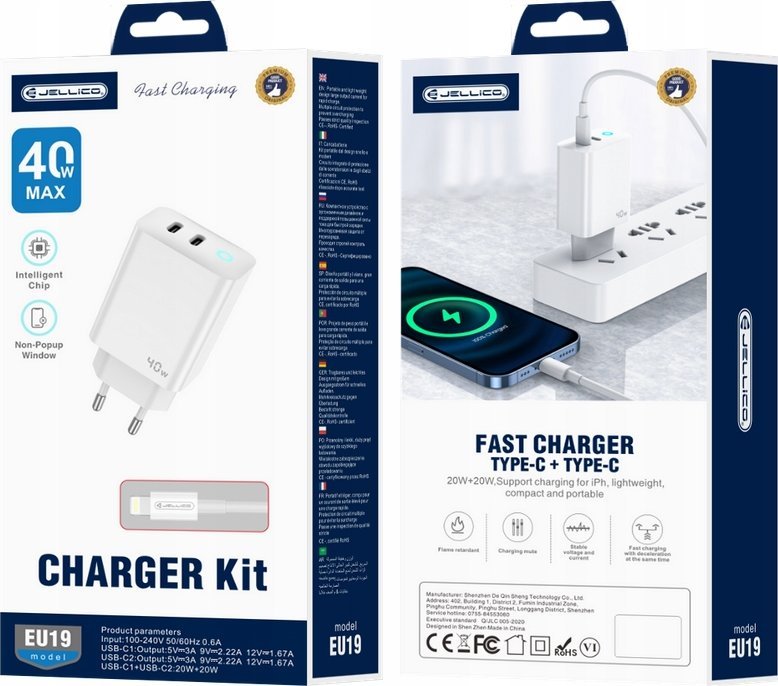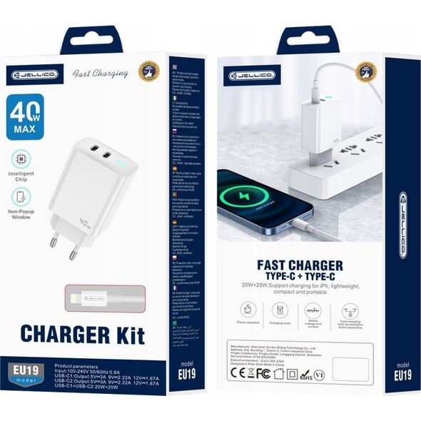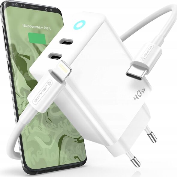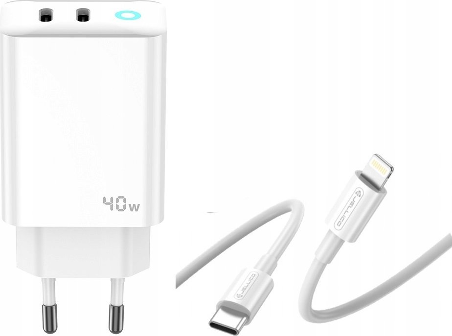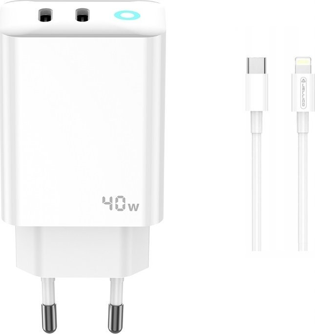 Φορτιστής Jellico JELLICO Ισχυρός φορτιστής τοίχου 40W 2xUSB C USB C - Καλώδιο LightningΦορτιστής Jellico JELLICO Ισχυρός φορτιστής τοίχου 40W 2xUSB C USB C - Καλώδιο Lightning