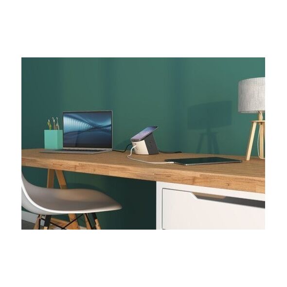 Σταθμός φόρτισης στα χέρια σας, συμπαγής και πρακτικός με επαγωγικό φορτιστή, ιδανική λύση για το γραφείο ή το σπίτι. Καλώδιο επέκτασης με 2 χωνευτές υποδοχές στο Γαλλοβελγικό πρότυπο 2P+E, 16A, 230V, 3680W. Επαγωγική πλατφόρμα Qi 10,0 W με αντιολισθητική επιφάνεια και ένδειξη φόρτισης. Συνιστάται για smartphone σε προστατευτική θήκη