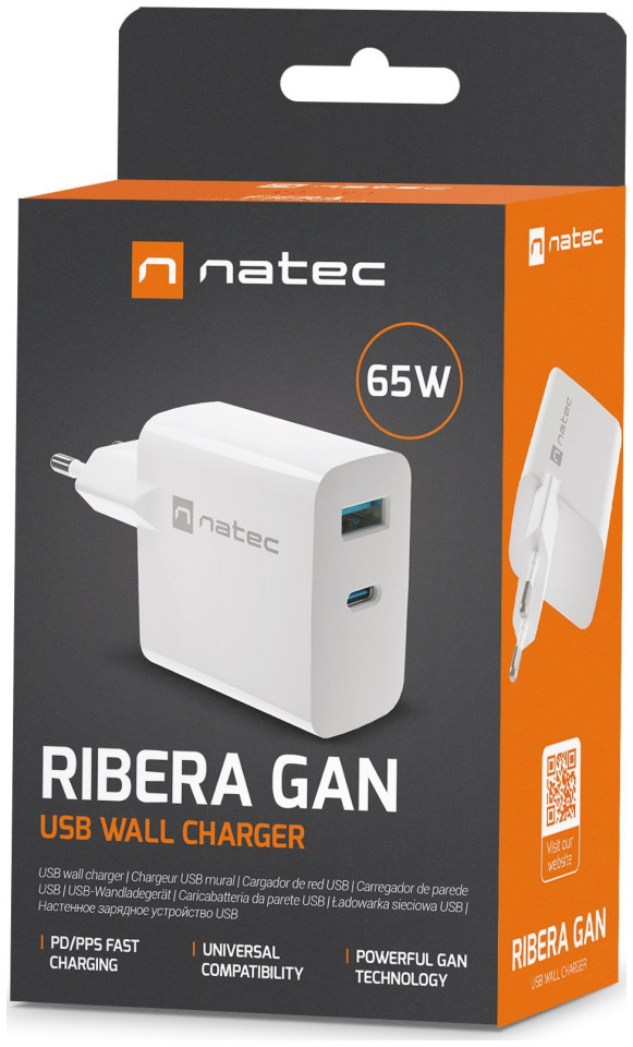 Szybsze ładowanie i mniejsze zużycie energii. Poznaj Natec Ribera GaN o mocy 65 W – wieloportową ładowarkę, z którą uzupełnisz energię 2 urządzeń jednocześnie (również wybranych laptopów obsługujących standard PD). Od teraz zajmie to jeszcze mniej czasu dzięki technologii szybkiego ładowania oraz wyższej wydajności energetycznej, będącej efektem zastosowania azotku galu (GaN) – nowego, wydajniejszego półprzewodnika, wpływającego pozytywnie również na rozmiar ładowarki. Mniejsza, lżejsza, wydajniejsza. Oto Natec Ribera GaN.