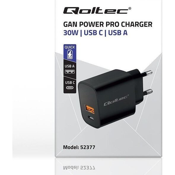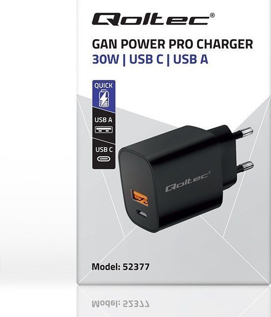 Φορτιστής Qoltec φορτιστής GaN Power Pro | 1xUSB-C | 1xUSB | 30W | 5-20V | 1,5-3Α | Μαύρος{Quick Charge} Ναι. {Quick Charge} Ναι. {Quick Charge} Ναι. {Χρώμα} Μαύρο. {Χρώμα} Μαύρο. {Χρώμα} Μαύρο. {Περιλαμβάνεται καλώδιο} Αρ. {Περιλαμβάνεται καλώδιο} Αρ. {Περιλαμβάνεται καλώδιο} Αρ