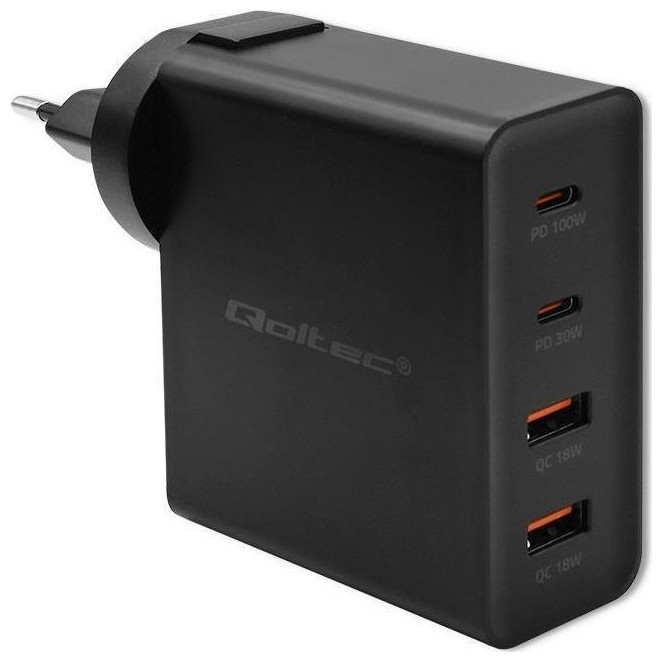 Φορτιστής Qoltec Φορτιστής GaN Power Pro | 2xUSB-C | 2xUSB | 130W | 5-20V | 1.5-5A| PD | Μαύρη