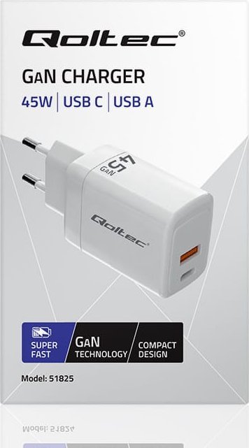 Φορτιστής Qoltec Φορτιστής δικτύου Qoltec 45W GaN λευκός