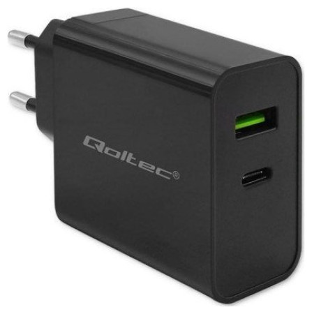 Φορτιστής QOLTEC Φορτιστής Super Quick PD | 1xUSB-C | 1xUSB | 45W | 5-20V | 2.25-3A | Μαύρη
