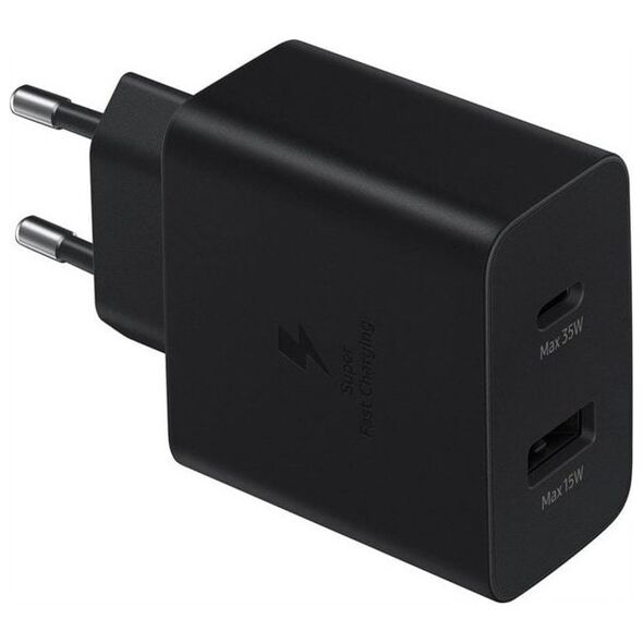 Τροφοδοτήστε γρήγορα δύο συμβατές συσκευές ταυτόχρονα και εξοικονομήστε χρόνο με τον αυθεντικό μετασχηματιστή Samsung Duo. Χάρη στη λειτουργία σούπερ γρήγορης φόρτισης που βασίζεται σε PD 3.0, θα παρέχει μέγιστη ισχύ έως και 35 W κατά τη φόρτιση μιας συσκευής μέσω USB-C και έως και 20 W κατά τη φόρτιση πολλών συσκευών. Άλλες συσκευές που συνδέονται μέσω της θύρας USB-A θα φορτίζονται στα 15W.