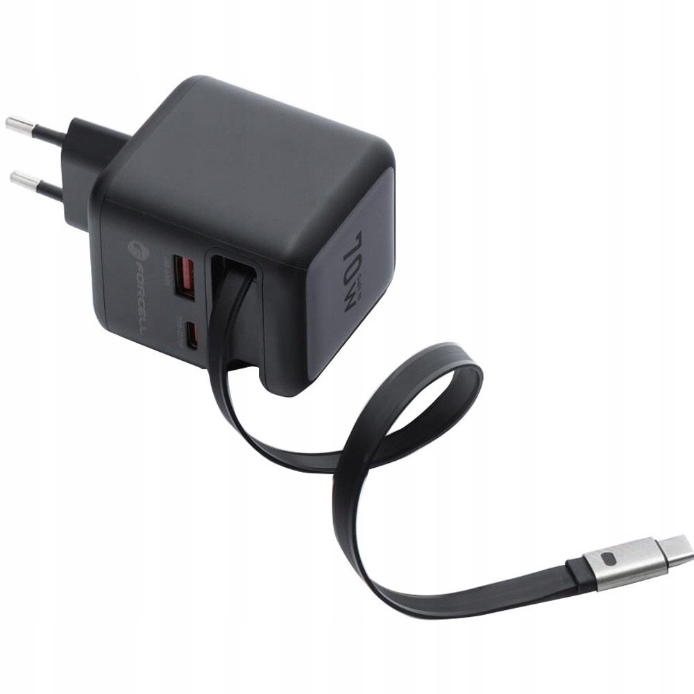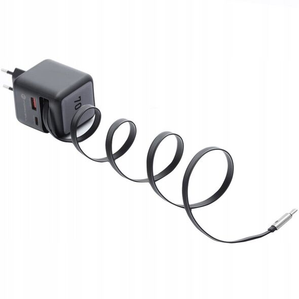 Φορτιστής τοίχου για τηλέφωνο Forcell F-Energy GaN USB C + USB A + αναδιπλούμενο καλώδιο USB C PD QC4.0 3A 70W VT-R7 γκρι
