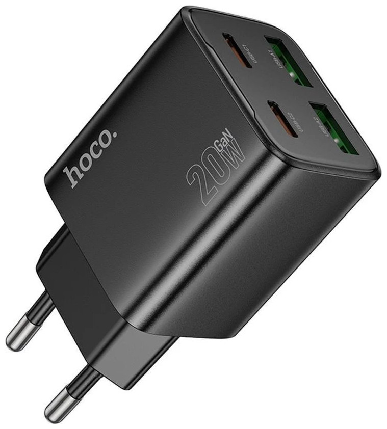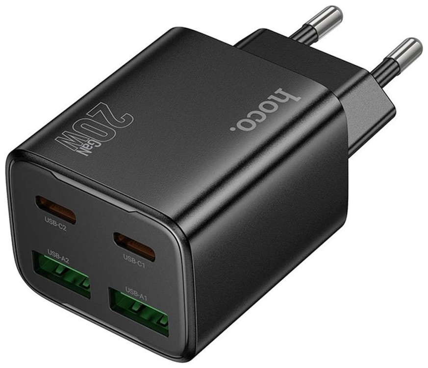 Φορτιστής τοίχου για τηλέφωνο HOCO 2 x USB C + 2 x USB A QC3.0 PD 3A 20W N55 μαύρο