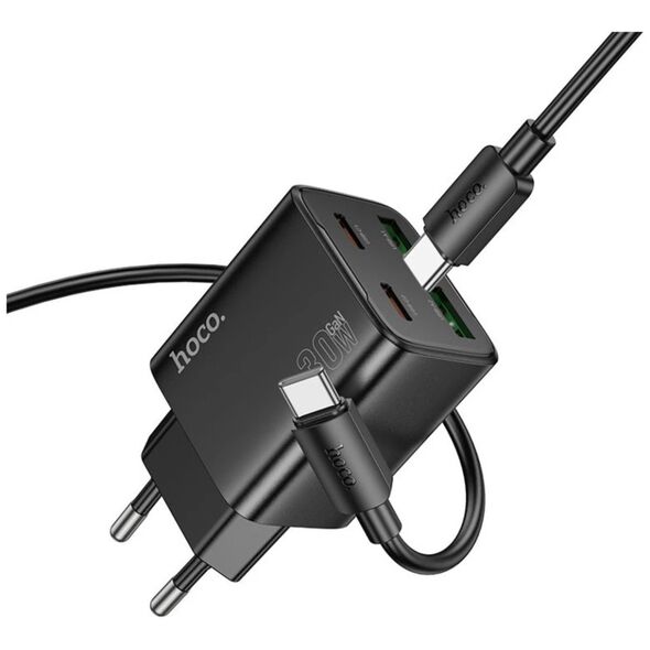 Φορτιστής τοίχου για τηλέφωνο HOCO 2 x USB C + 2 x USB A QC3.0 PD 3A 30W + καλώδιο USB C σε USB C N56 μαύρο