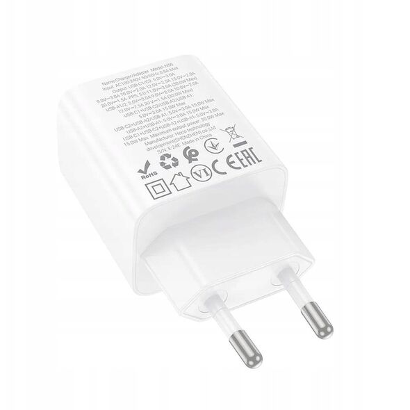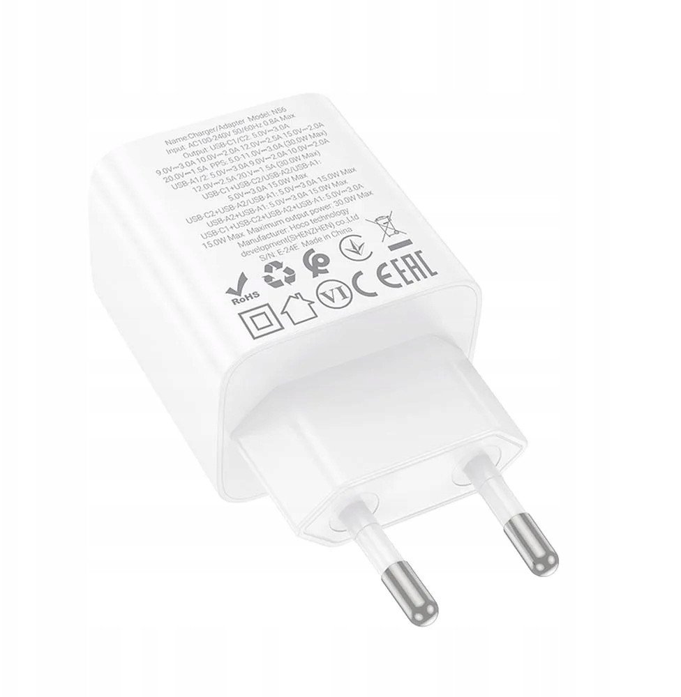 Φορτιστής τοίχου για τηλέφωνο HOCO 2 x USB C + 2 x USB A QC3.0 PD 3A 30W N56 λευκός